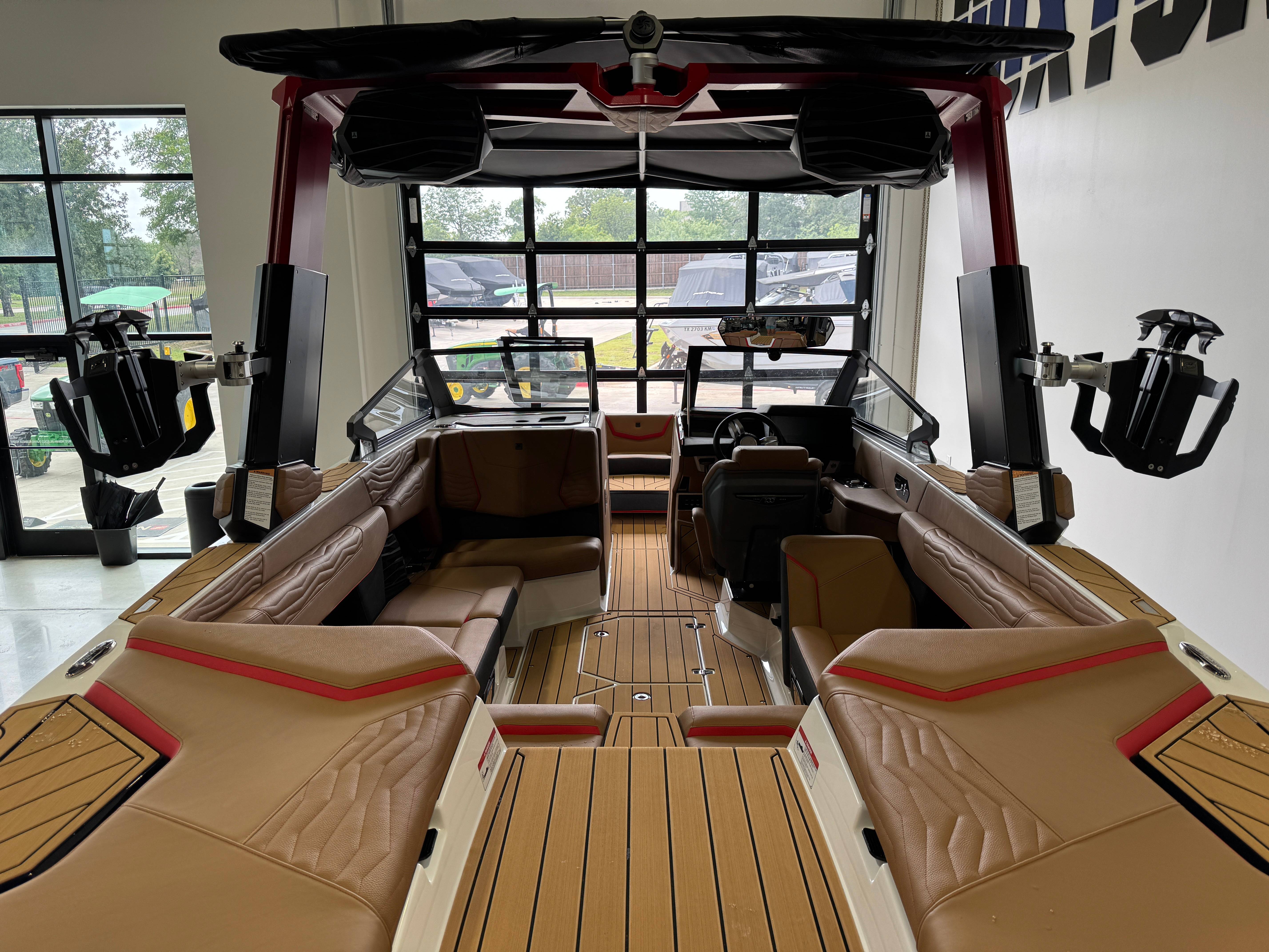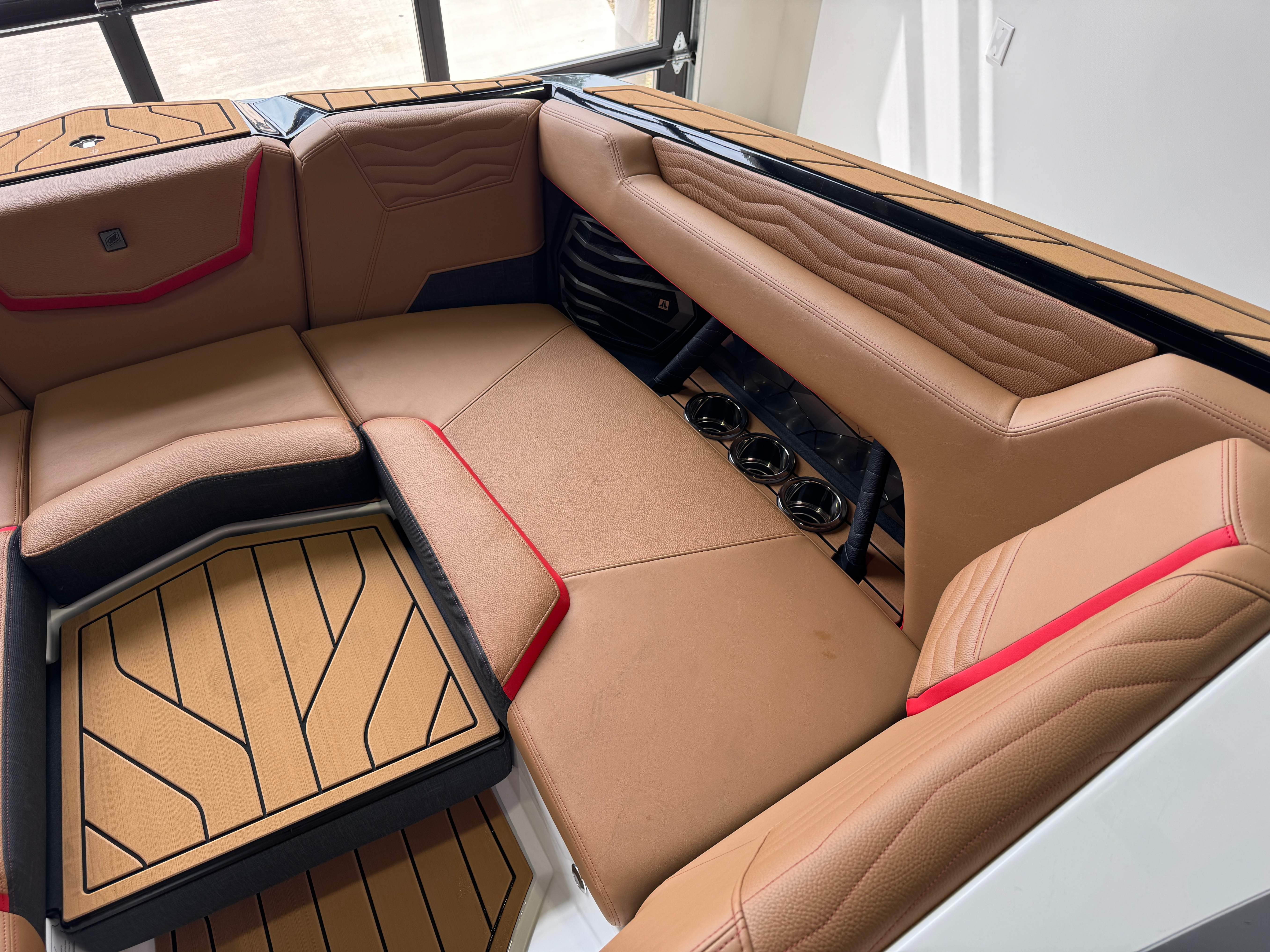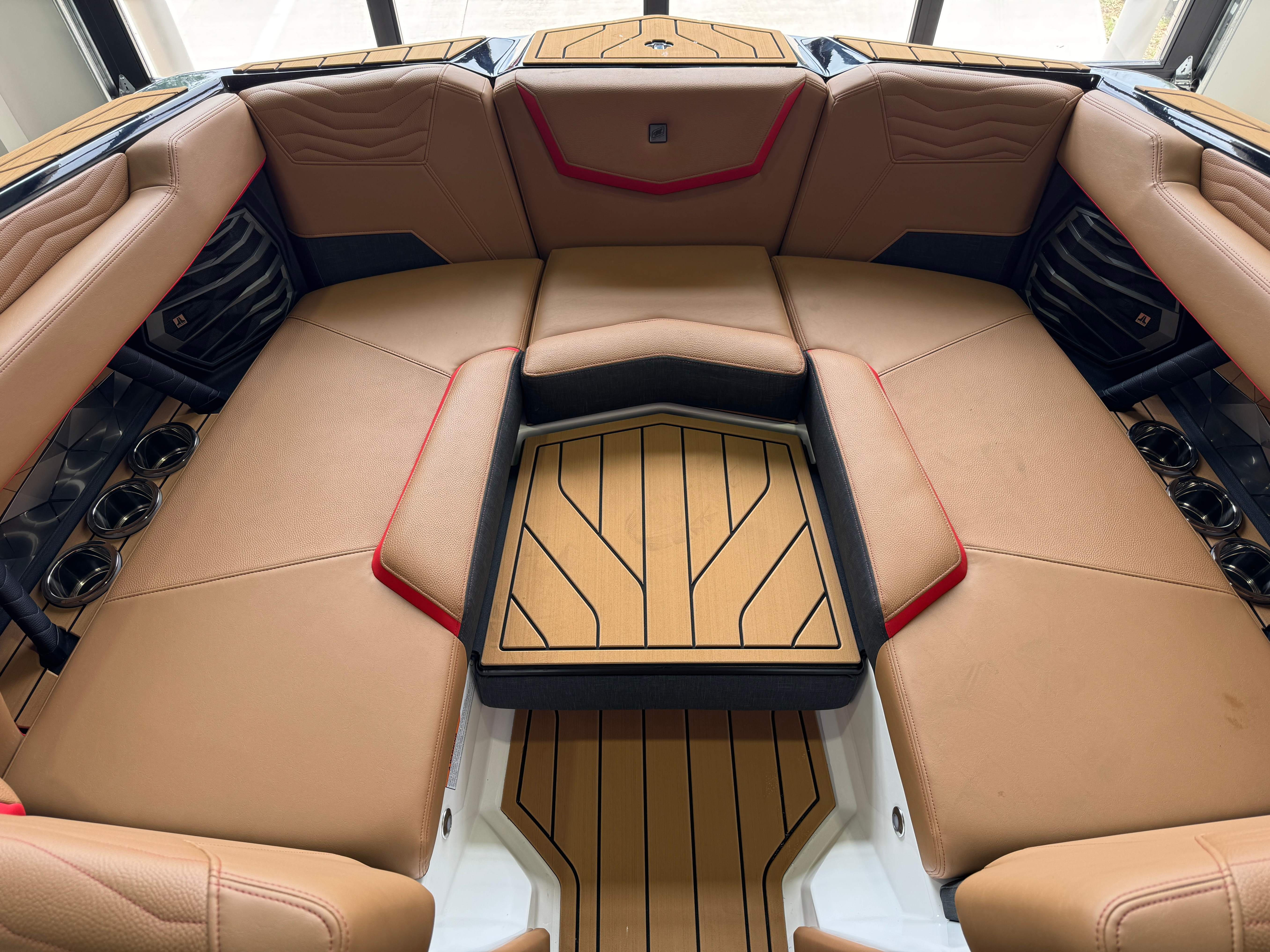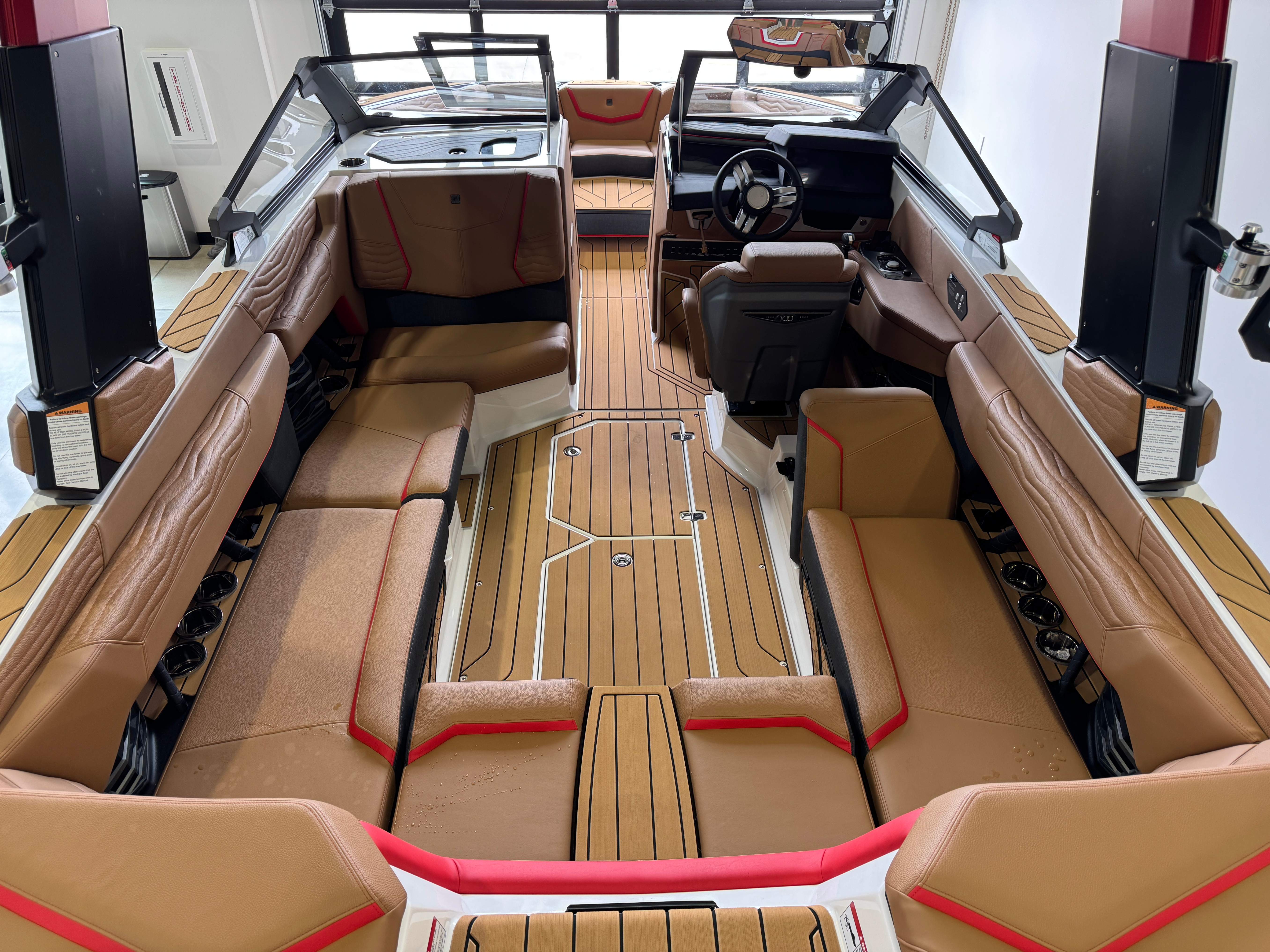 2025 Super Air Nautique G23 ZZ6 450HP - 6.2L Direct Injection Telescoping Flight Control Tower System Tower Prep Kit JL Audio M Series Studio(Pre-Wired 8 Channel Amp) Maps US-Canada Battery Maintenance System 110 (Integrated Charger-Dual Battery) Cover - Platform Cover-Telescoping Tower Towable/Mooring w/Anti-Pooling(TowerDown) Ballast - Supplemental (Additional 1,200 lbs) Ladder - Platform Access Lights - Enhanced Courtesy Lighting Package Lights - Underwater LINC Panoray - Navionics Maps Nautique Integrated Steering Assist Tandem Spoke Leather Steering Wheel Wireless Chargers - Magnetic, Pockets and Glovebox Seating - Actuated Helm Seat, Height Adjustable Seating - Bow Filler Cushion Seating - Heated Driver's and Loveseat Stereo - JL Audio M6 Series Studio Elite (Wavefront) Stereo - Transom Mounted Remote Control Walk-Thru Air-Dam (Smoked Acrylic Pocket Door) 2025 Super Air Nautique G23 Standard Items listed below Nautique Configurable Running Surface with Hydro-Plate Nautique LINC PANORAY with Helm Control, Zero Off GPS Speed Control Nautique Surf System™ with WAVEPLATE & Surf Pipe Exhaust Freshwater Engine Flush System Wake Package(Integrated 2400 lbs Ballast System) Power Management Access with Dual AGM Batteries Lighting-Navigation and Docking Light Array, LED Courtesy Lights Cleats (4), Coolers 2 (Removable), Waste Receptacle Sliding Reversible Stern Seat and Flip-Up Lounge Seat (Port) Transom Seating, Premium Mirror GoPro™ Ready Rotating Tow Point MyNautique™ Connectivity Platform Centennial Package (Chromax, Steering Wheel, Glovebox, Non-Skid) Helm Command Center with Wireless Charger Stereo - JL Audio® M6 Series Elite with DSP (Stereo, 6 Speakers, 10in Subwoofer and 8 Channel Amp) if Stereo JL Audio® M6 Series Studio Elite (Wavefront) not selected Flight Control Tower (Textured Finish) with Nautique Awareness Camera if Flight Control Tower Actuated or Telescoping Tower is not selected Rotating Wakeboard/Wakesurf Racks if Nautique Strapless Board Racks is not selected