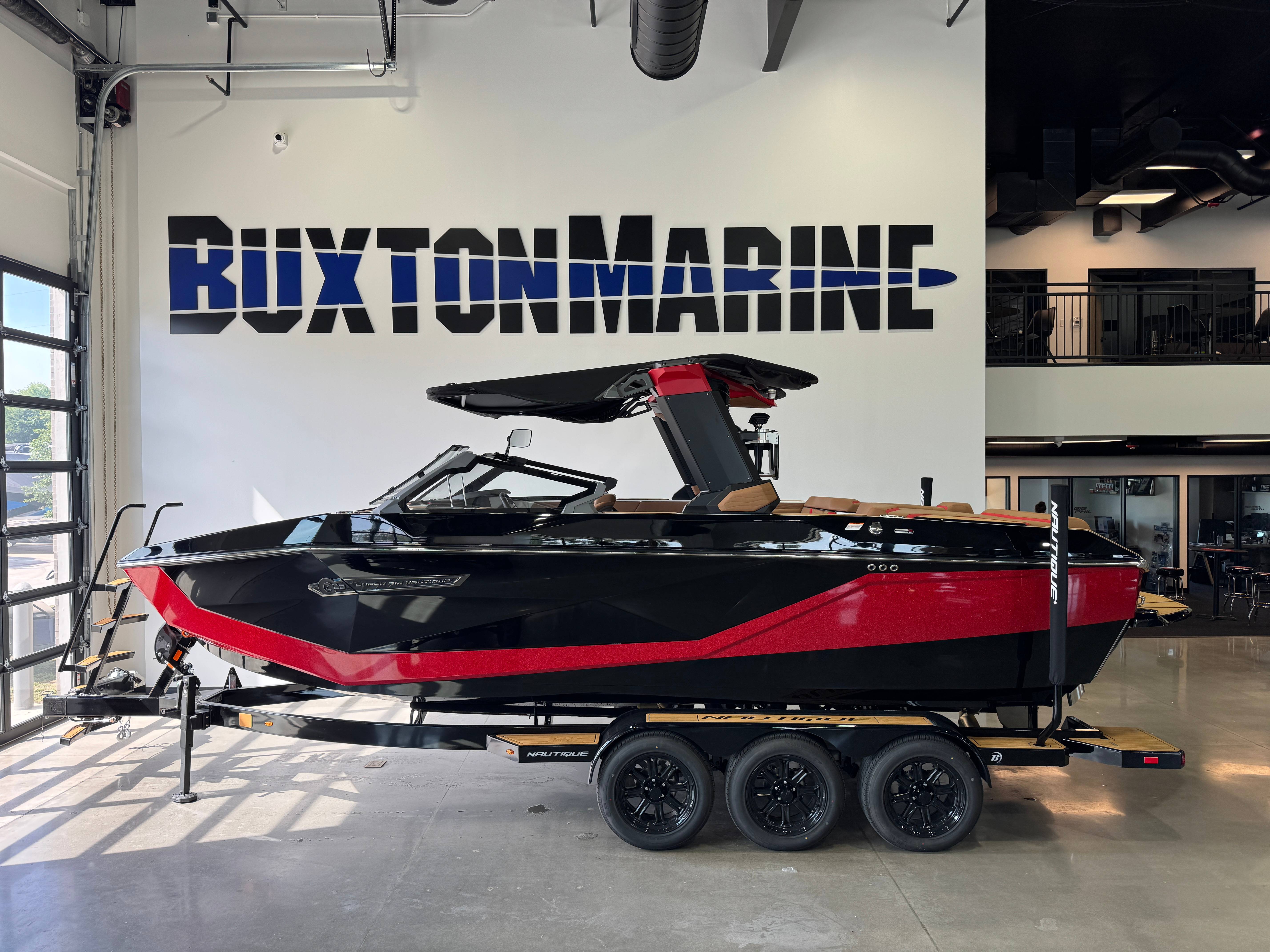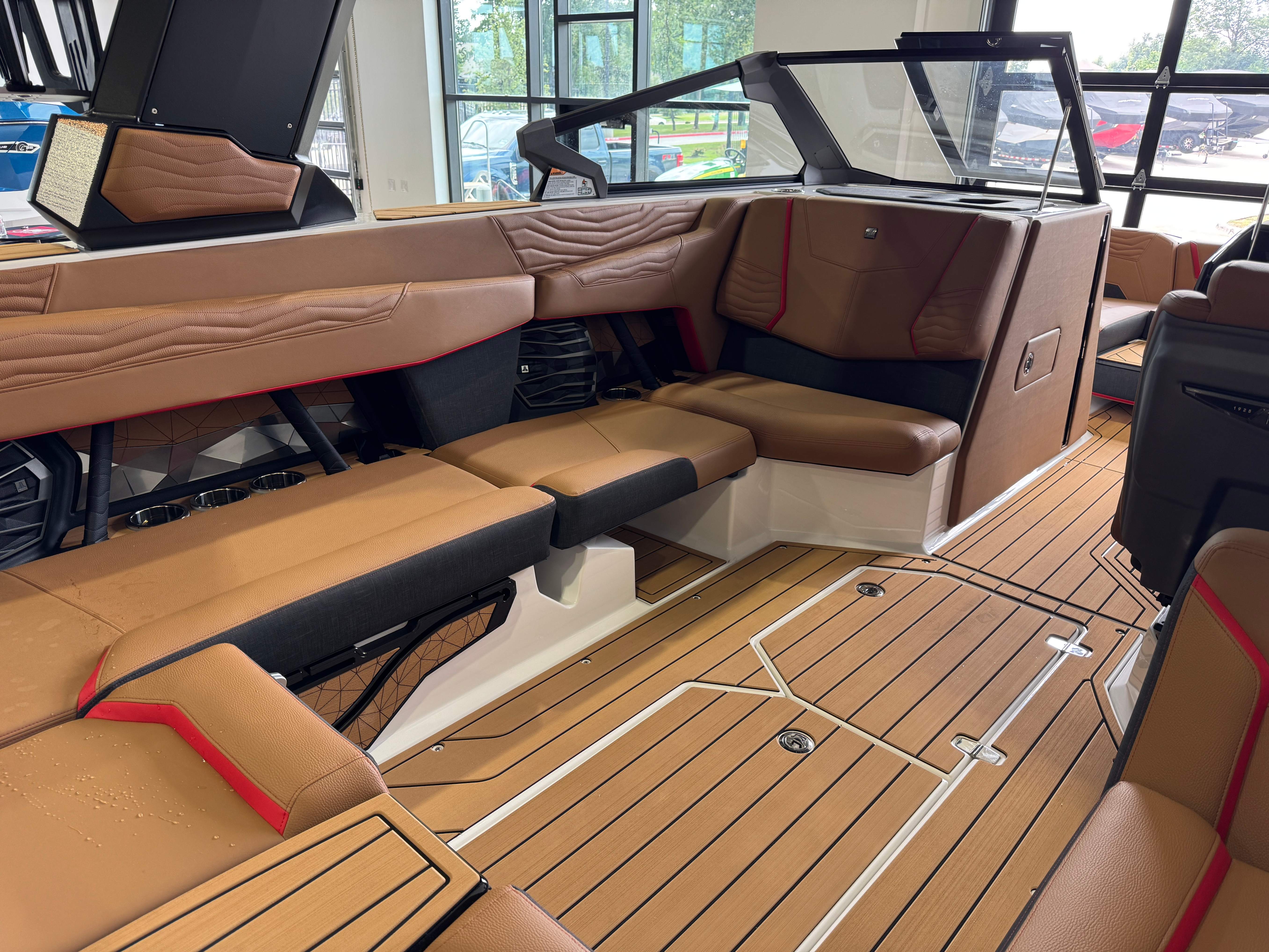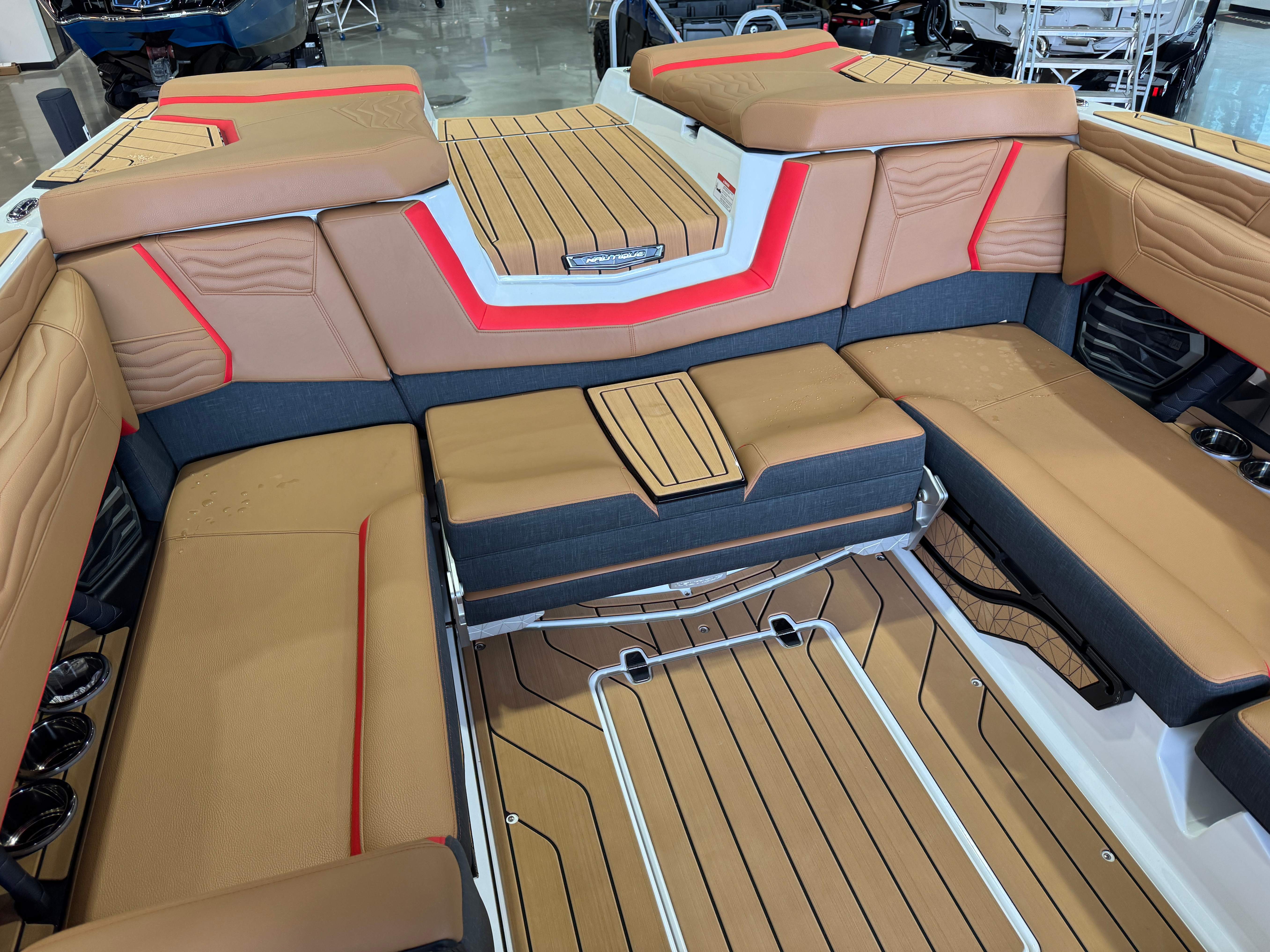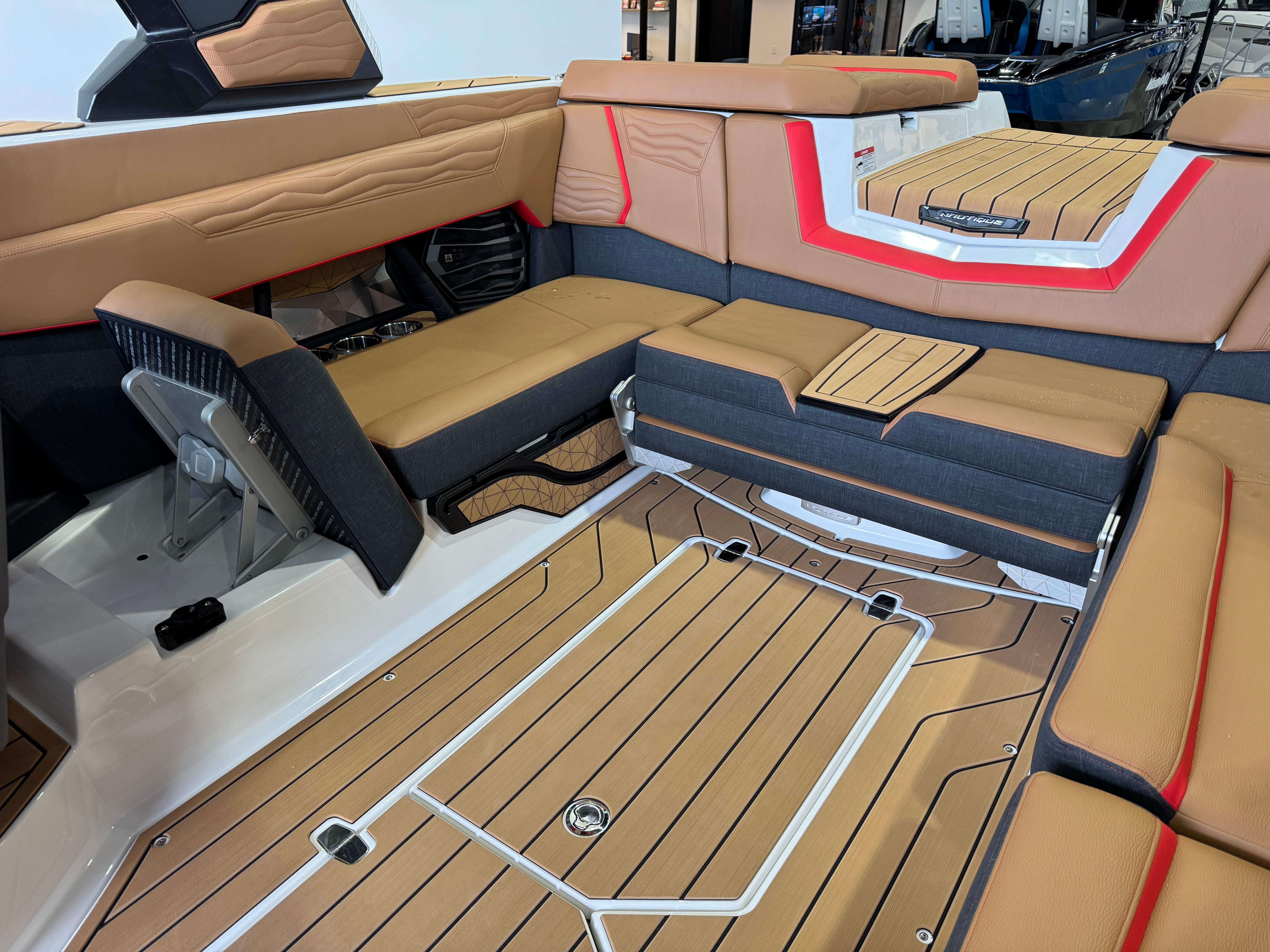 2025 Super Air Nautique G23 ZZ6 450HP - 6.2L Direct Injection Telescoping Flight Control Tower System Tower Prep Kit JL Audio M Series Studio(Pre-Wired 8 Channel Amp) Maps US-Canada Battery Maintenance System 110 (Integrated Charger-Dual Battery) Cover - Platform Cover-Telescoping Tower Towable/Mooring w/Anti-Pooling(TowerDown) Ballast - Supplemental (Additional 1,200 lbs) Ladder - Platform Access Lights - Enhanced Courtesy Lighting Package Lights - Underwater LINC Panoray - Navionics Maps Nautique Integrated Steering Assist Tandem Spoke Leather Steering Wheel Wireless Chargers - Magnetic, Pockets and Glovebox Seating - Actuated Helm Seat, Height Adjustable Seating - Bow Filler Cushion Seating - Heated Driver's and Loveseat Stereo - JL Audio M6 Series Studio Elite (Wavefront) Stereo - Transom Mounted Remote Control Walk-Thru Air-Dam (Smoked Acrylic Pocket Door) 2025 Super Air Nautique G23 Standard Items listed below Nautique Configurable Running Surface with Hydro-Plate Nautique LINC PANORAY with Helm Control, Zero Off GPS Speed Control Nautique Surf System™ with WAVEPLATE & Surf Pipe Exhaust Freshwater Engine Flush System Wake Package(Integrated 2400 lbs Ballast System) Power Management Access with Dual AGM Batteries Lighting-Navigation and Docking Light Array, LED Courtesy Lights Cleats (4), Coolers 2 (Removable), Waste Receptacle Sliding Reversible Stern Seat and Flip-Up Lounge Seat (Port) Transom Seating, Premium Mirror GoPro™ Ready Rotating Tow Point MyNautique™ Connectivity Platform Centennial Package (Chromax, Steering Wheel, Glovebox, Non-Skid) Helm Command Center with Wireless Charger Stereo - JL Audio® M6 Series Elite with DSP (Stereo, 6 Speakers, 10in Subwoofer and 8 Channel Amp) if Stereo JL Audio® M6 Series Studio Elite (Wavefront) not selected Flight Control Tower (Textured Finish) with Nautique Awareness Camera if Flight Control Tower Actuated or Telescoping Tower is not selected Rotating Wakeboard/Wakesurf Racks if Nautique Strapless Board Racks is not selected