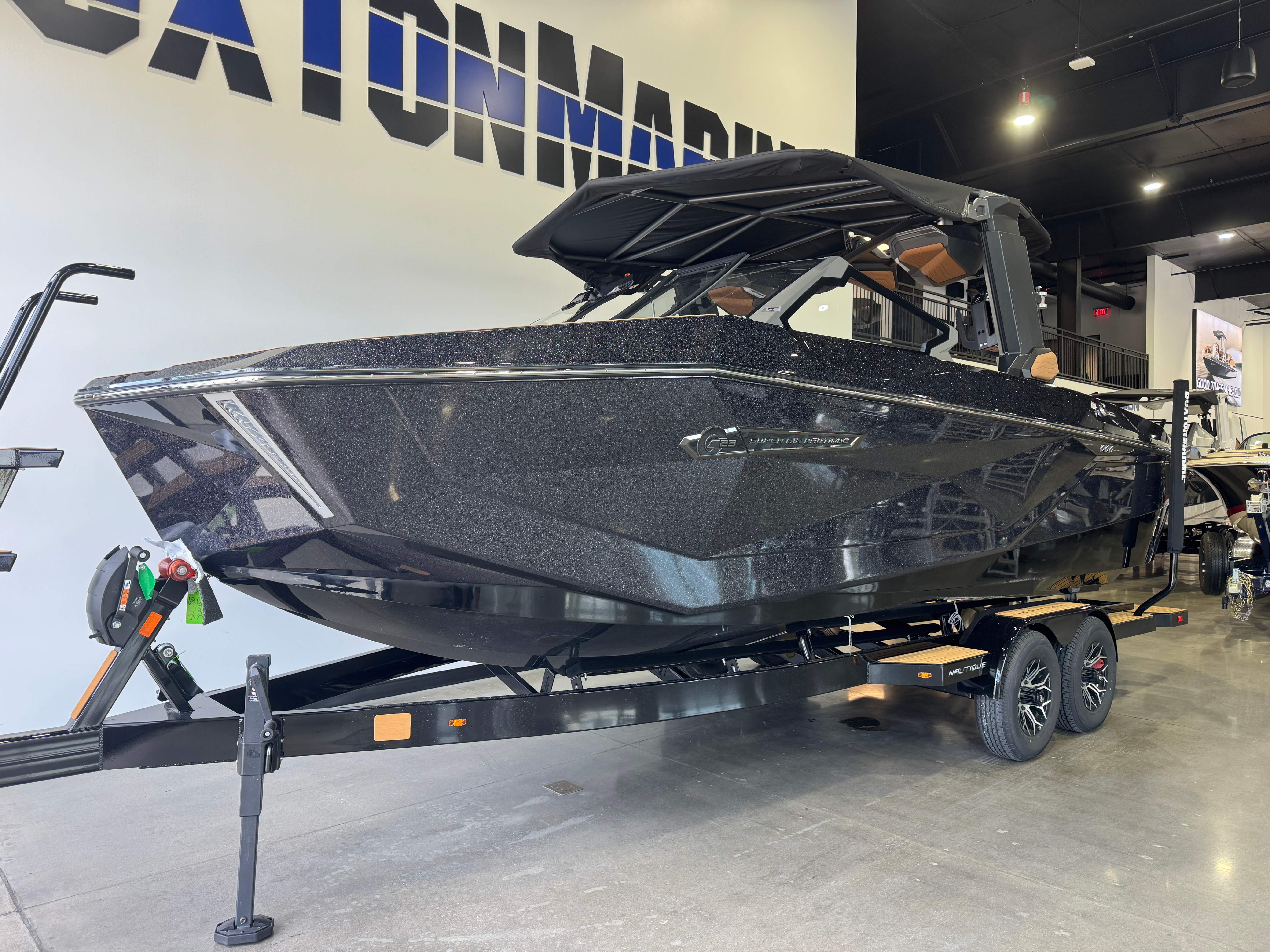 2025 Super Air Nautique G23 ZZ6 450HP - 6.2L Direct Injection Telescoping Flight Control Tower System Tower Prep Kit JL Audio M Series Studio(Pre-Wired 8 Channel Amp) Maps US-Canada Battery Maintenance System 110 (Integrated Charger-Dual Battery) Cover - Platform Cover-Telescoping Tower Towable/Mooring w/Anti-Pooling(TowerDown) Ballast - Supplemental (Additional 1,200 lbs) Heater with Defroster Ladder - Platform Access Lights - Enhanced Courtesy Lighting Package LINC Panoray - Navionics Maps Nautique Integrated Steering Assist Wireless Chargers - Magnetic, Pockets and Glovebox Seating - Bow Filler Cushion Stereo - JL Audio M6 Series Studio Elite (Wavefront) Stereo - Transom Mounted Remote Control 2025 Super Air Nautique G23 Standard Items listed below Nautique Configurable Running Surface with Hydro-Plate Nautique LINC PANORAY with Helm Control, Zero Off GPS Speed Control Nautique Surf System™ with WAVEPLATE & Surf Pipe Exhaust Freshwater Engine Flush System Wake Package(Integrated 2400 lbs Ballast System) Power Management Access with Dual AGM Batteries Lighting-Navigation and Docking Light Array, LED Courtesy Lights Cleats (4), Coolers 2 (Removable), Waste Receptacle Sliding Reversible Stern Seat and Flip-Up Lounge Seat (Port) Transom Seating, Premium Mirror GoPro™ Ready Rotating Tow Point MyNautique™ Connectivity Platform Centennial Package (Chromax, Steering Wheel, Glovebox, Non-Skid) Helm Command Center with Wireless Charger Stereo - JL Audio® M6 Series Elite with DSP (Stereo, 6 Speakers, 10in Subwoofer and 8 Channel Amp) if Stereo JL Audio® M6 Series Studio Elite (Wavefront) not selected Flight Control Tower (Textured Finish) with Nautique Awareness Camera if Flight Control Tower Actuated or Telescoping Tower is not selected Rotating Wakeboard/Wakesurf Racks if Nautique Strapless Board Racks is not selected