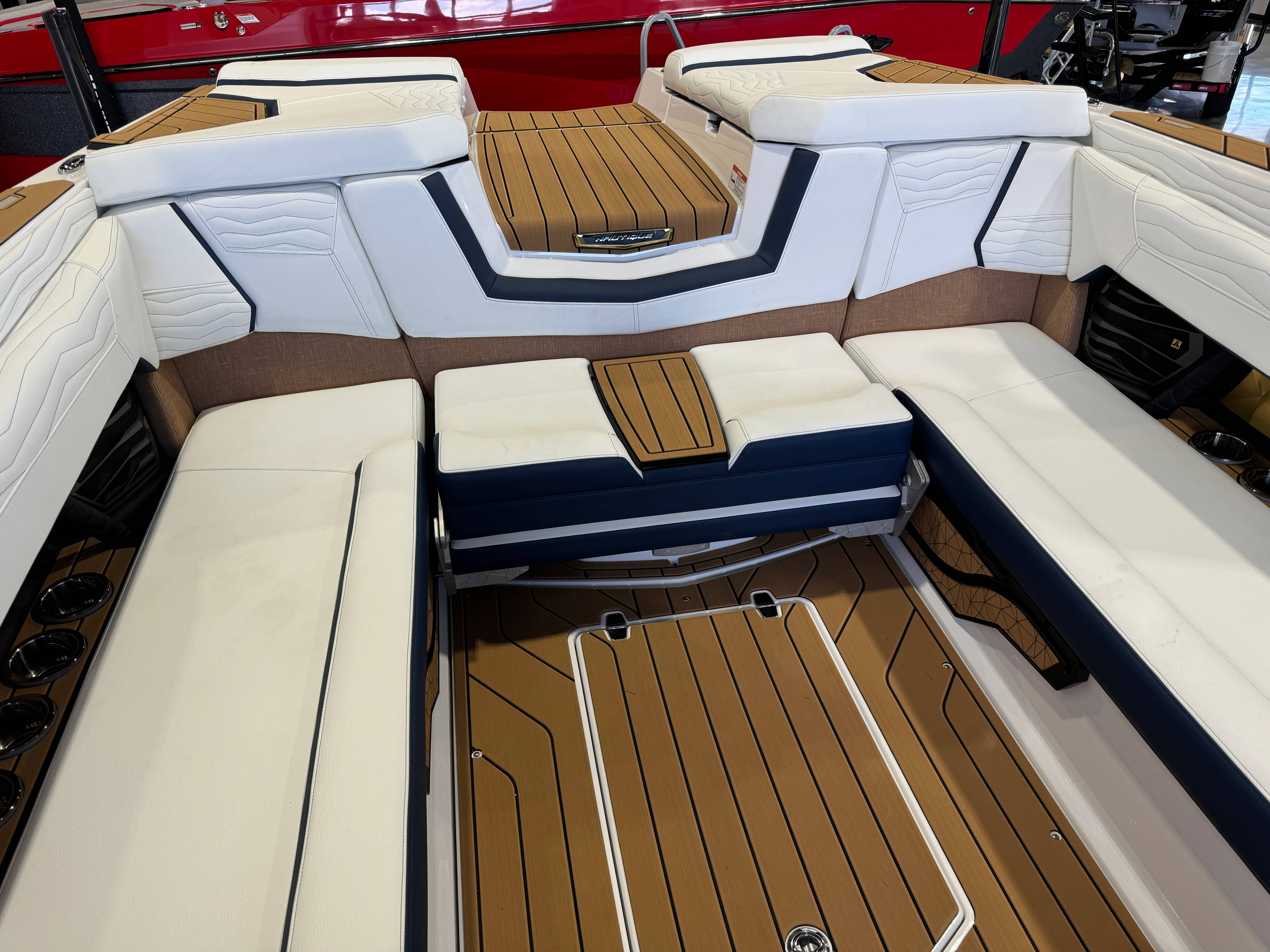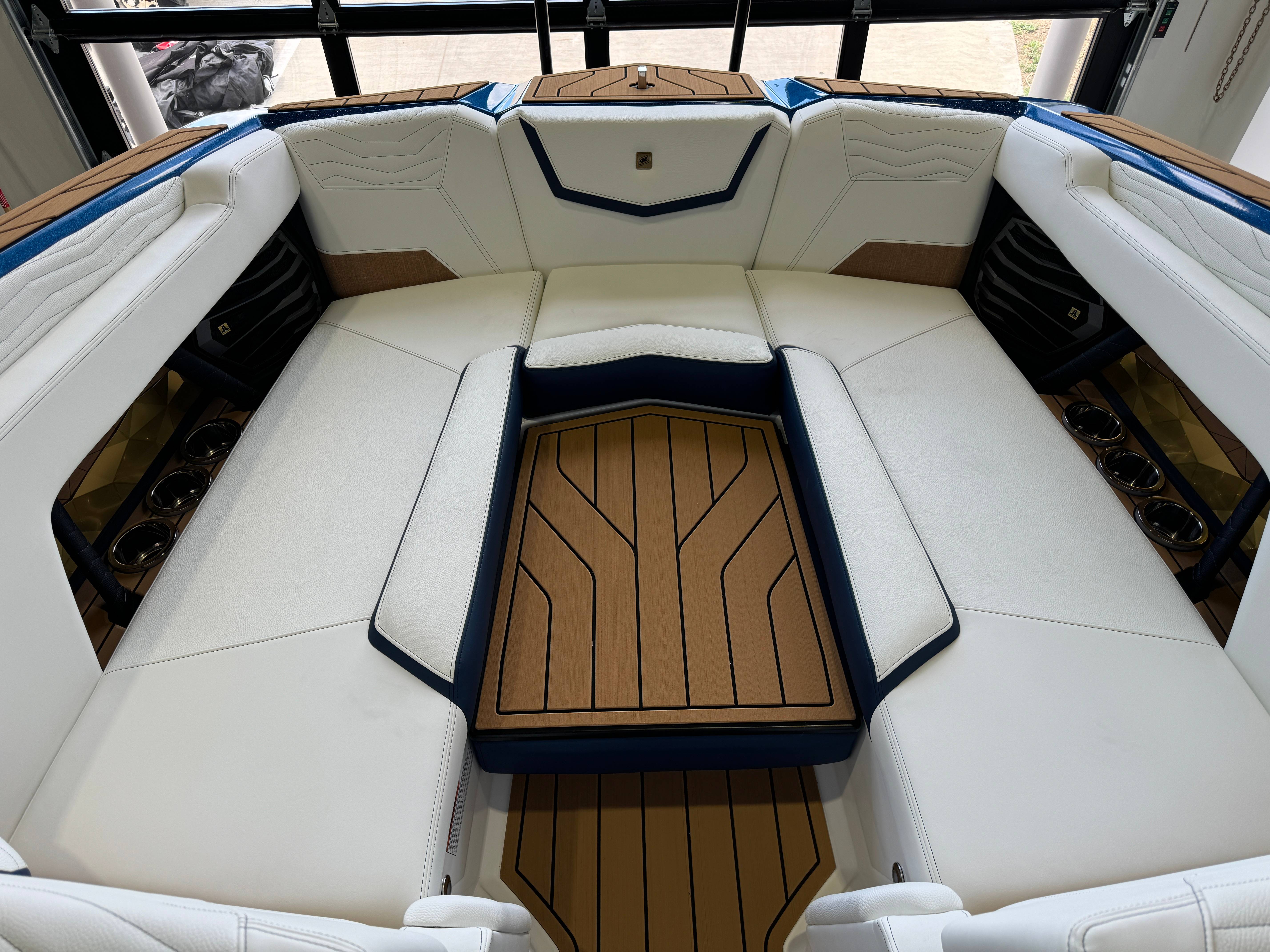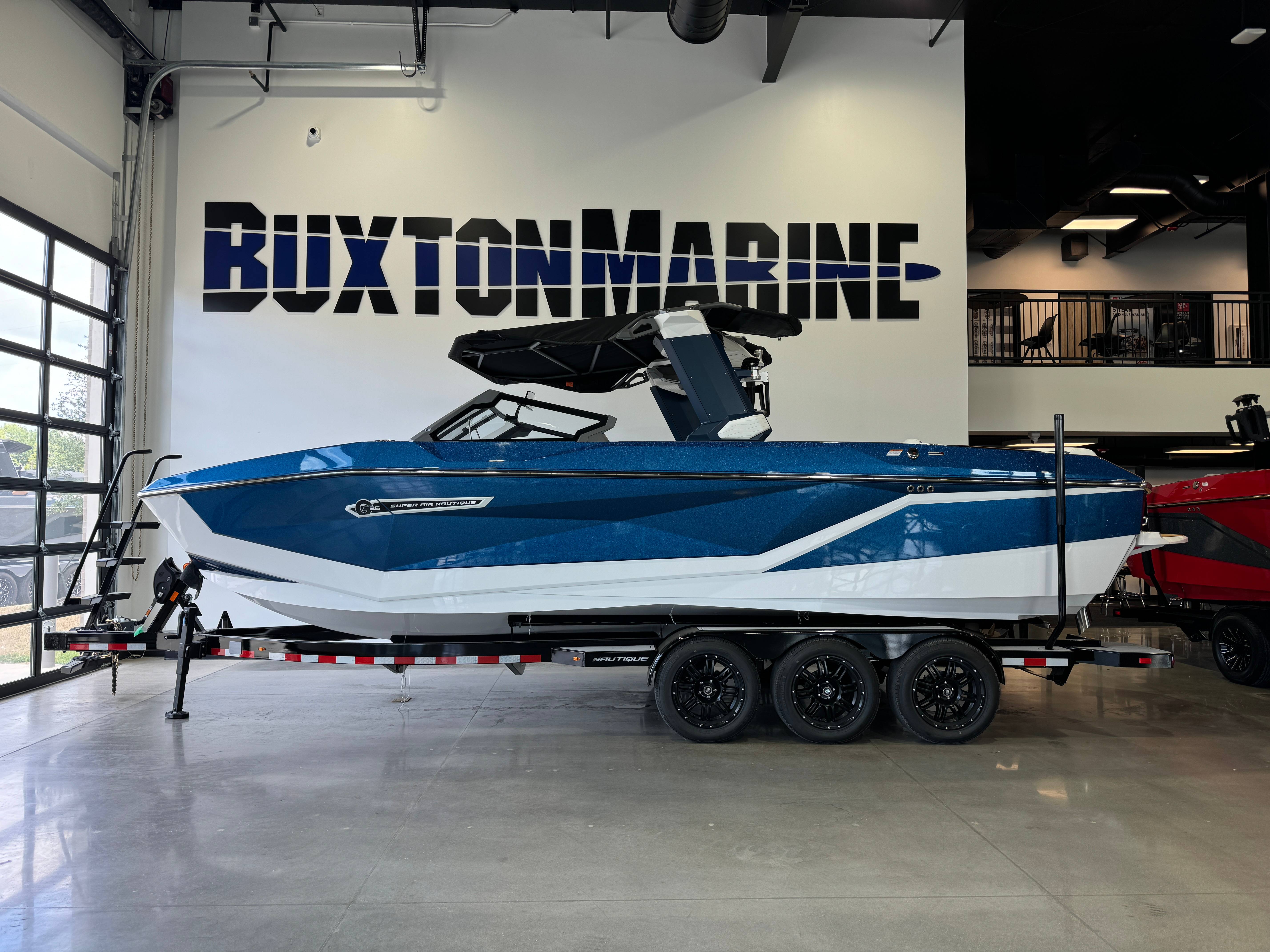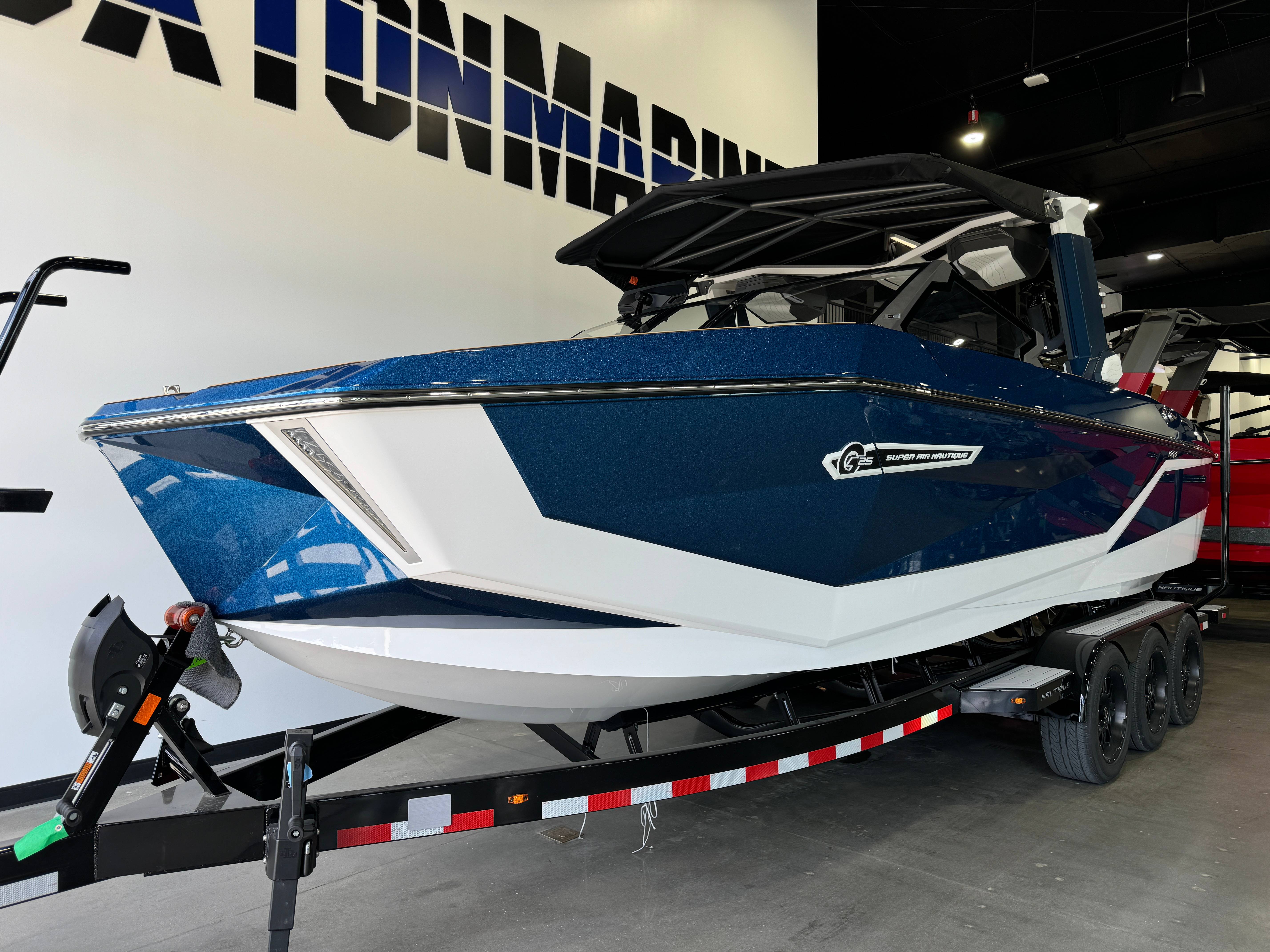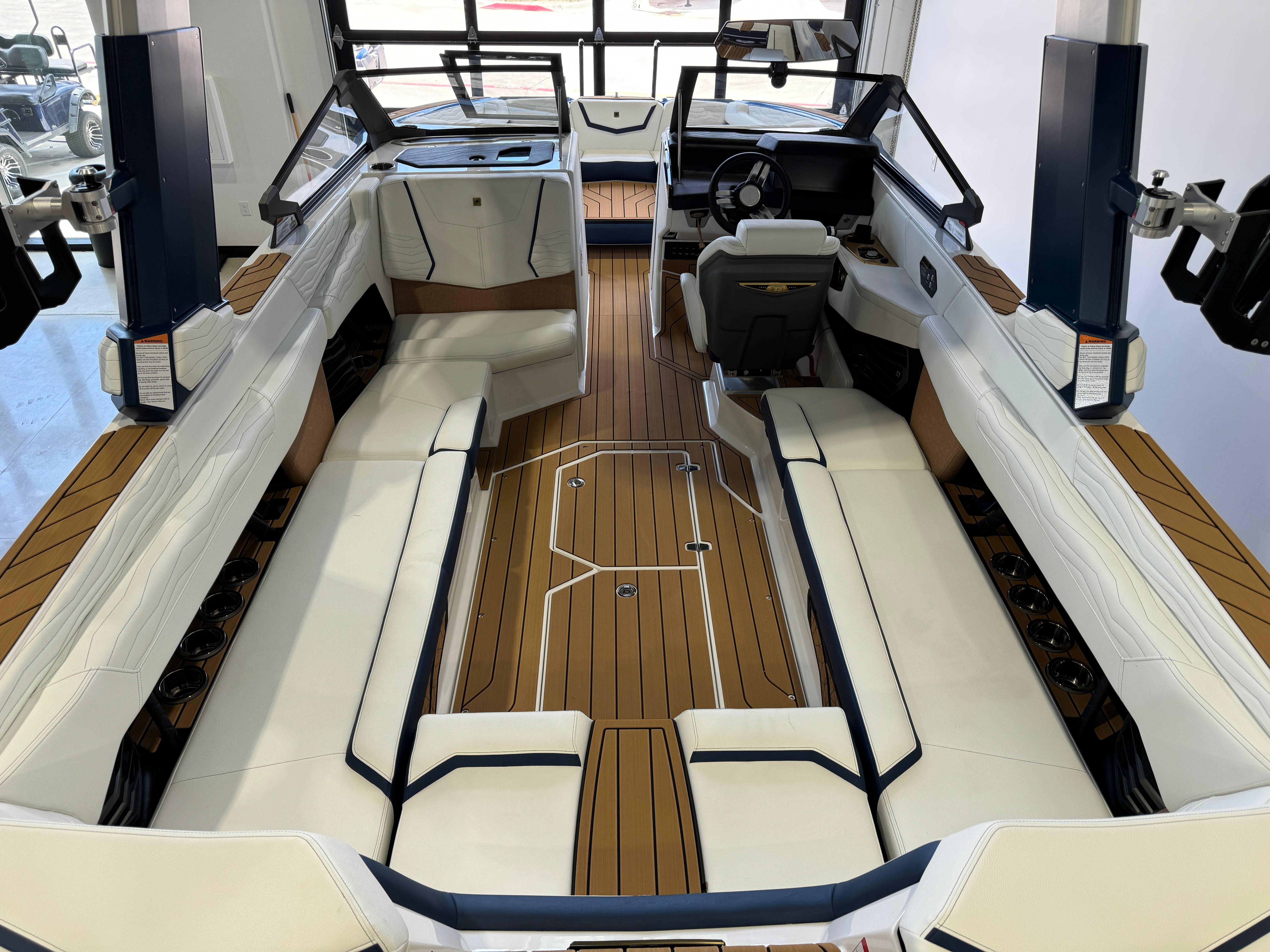 2025 Super Air Nautique G25 ZZ6 450HP - 6.2L Direct Injection Extended Sun Shade - Aft (Telescoping) Telescoping Flight Control Tower System Tower Prep Kit JL Audio M Series Studio(Pre-Wired 8 Channel Amp) Maps US-Canada Battery Maintenance System 110 (Integrated Charger-Dual Battery) Cover - Platform Cover-Telescoping Tower Towable/Mooring w/Anti-Pooling(TowerDown) Ballast - Supplemental (Additional 1,200 lbs) Lights - Enhanced Courtesy Lighting Package Lights - Underwater LINC Panoray - Navionics Maps Nautique Integrated Steering Assist Pillows 2 Sets (2 Per Set) Tandem Spoke Leather Steering Wheel Wireless Chargers - Magnetic, Pockets and Glovebox Seating - Actuated Helm Seat, Height Adjustable Seating - Bow Armrests (Retractable) Seating - Bow Filler Cushion Seating - Heated Driver's and Loveseat Stereo - JL Audio M6 Series Studio Elite (Wavefront) Stereo - Transom Mounted Remote Control Air-Dam Walk-Thru Air-Dam (Smoked Acrylic Pocket Door) 2025 Super Air Nautique G25 Standard Items listed below Nautique Configurable Running Surface with Hydro-Plate Nautique LINC PANORAY with Helm Control, Zero Off GPS Speed Control Nautique Surf System™ with WAVEPLATE & Surf Pipe Exhaust Freshwater Engine Flush System Wake Package(Integrated 2400 lbs Ballast System) Power Management Access with Dual AGM Batteries Lighting-Navigation and Docking Light Array, LED Courtesy Lights Cleats (4), Coolers 2 (Removable), Waste Receptacle Sliding Reversible Stern Seat and Flip-Up Lounge Seat (Port) Transom Seating, Premium Mirror GoPro™ Ready Rotating Tow Point MyNautique™ Connectivity Platform Centennial Package (Chromax, Steering Wheel, Glovebox, Non-Skid) Helm Command Center with Wireless Charger Stereo - JL Audio® M6 Series Elite with DSP (Stereo, 6 Speakers, 10in Subwoofer and 8 Channel Amp) if Stereo JL Audio® M6 Series Studio Elite (Wavefront) not selected Flight Control Tower (Textured Finish) with Nautique Awareness Camera if Flight Control Tower Actuated or Telescoping Tower is not selected Rotating Wakeboard/Wakesurf Racks if Nautique Strapless Board Racks is not selected