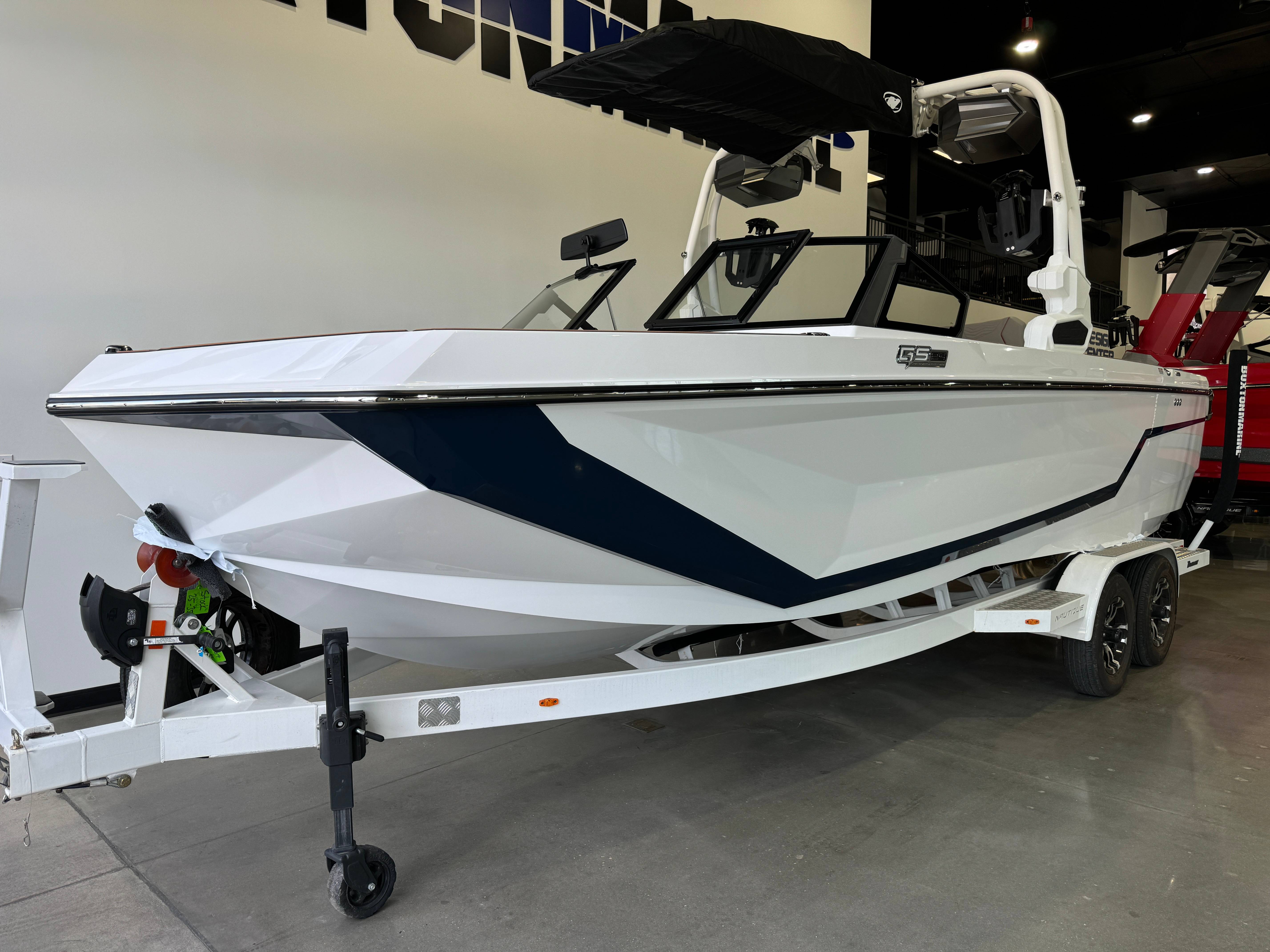 2025 Super Air Nautique GS24 ZZ5 355HP - 5.3L Direct Injection Bimini - Tower Mounted Tri-Fold with Surf Pockets Nautique Awareness Camera Nautique Strapless Board Racks Tower Prep Kit JL Audio M Series Elite(Pre-Wired 4 Channel Amp) Speakers Tower Speakers-Dual Spkr Housing JL Audio M6 Series 880x Spkrs(4) Tower Shock 2500N Maps US-Canada Battery Maintenance System 110 (Integrated Charger-Dual Battery) Cover - Platform Cover-Towable/Mooring(Tower Up) w/Anti-Pooling (Std or Act Tower) Ballast - Supplemental (Additional 500 LBS) Ladder - Platform Access Lights - Enhanced Courtesy Lighting Package LINC Panoray - Navionics Maps Ski Pylon - Retractable Wireless Charging Seating - Bow Filler Cushion Stereo - JL Audio M3 Series Premier 2025 Super Air Nautique GS24 Standard Items listed below Nautique Configurable Running Surface with Hydro-Plate Nautique LINC PANORAY with Helm Control, Zero Off GPS Speed Control Flight Control Tower (Textured Finish) Nautique Surf System™ with WAVEPLATE & Surf Pipe Exhaust Freshwater Engine Flush System Wake Package (Integrated 2950 Pound Ballast System) LED Courtesy Lighting Cleats (4), Removable Cooler, Waste Receptacle Flip-Up Lounge Seats MyNautique™ Connectivity Platform Premium Mirror Centennial Package (Chromax, Steering Wheel, Glovebox, Non-Skid) Rotating Wakeboard/Wakesurf Racks if Nautique Strapless Board Racks not selected Stereo - JL Audio® M3 Series (Stereo, 2 Channel Amp, 4 M3 Speakers) if Stereo Premier not selected If Flight Control Tower - Actuated with Go Pro Ready Quick Mount is Selected, Nautique Awareness Camera is Included