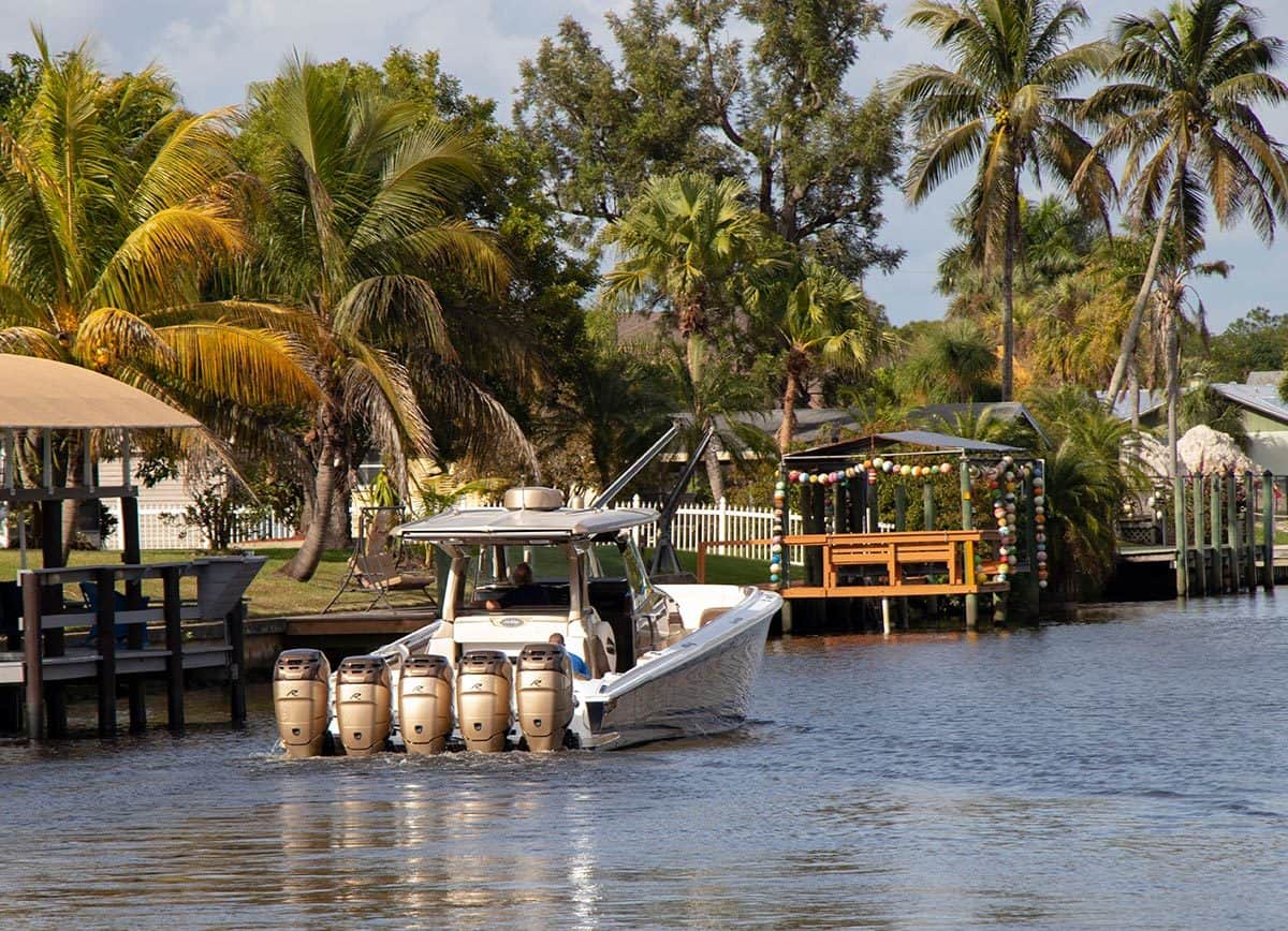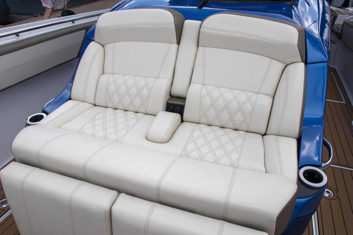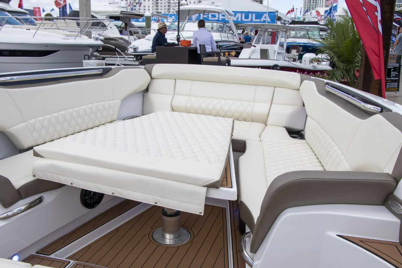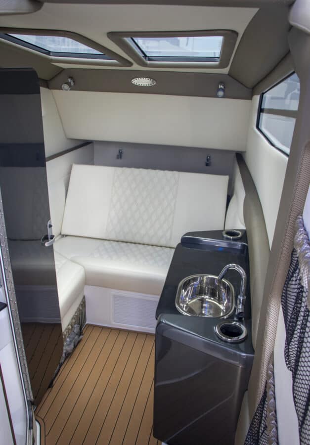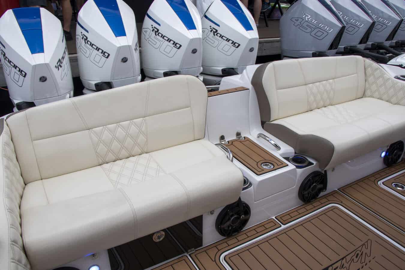 Boating meets sport meets art with the Nor-Tech 450 Sport. The sleek, sweeping lines of this machine are just the start of watching heads turn. The clean, streamlined construction make this 45-foot boat look even bigger. Add quad or quint Mercury motors, and the power will magnetize you to hop on board. In fact, everyone will want to be aboard the 450 Sport, and there’s plenty of room and luxurious creature comforts — including a wraparound sofa and wetbar. As with every Nor-Tech, the 450 Sport is put through a rigorous sea trial to ensure quality control.