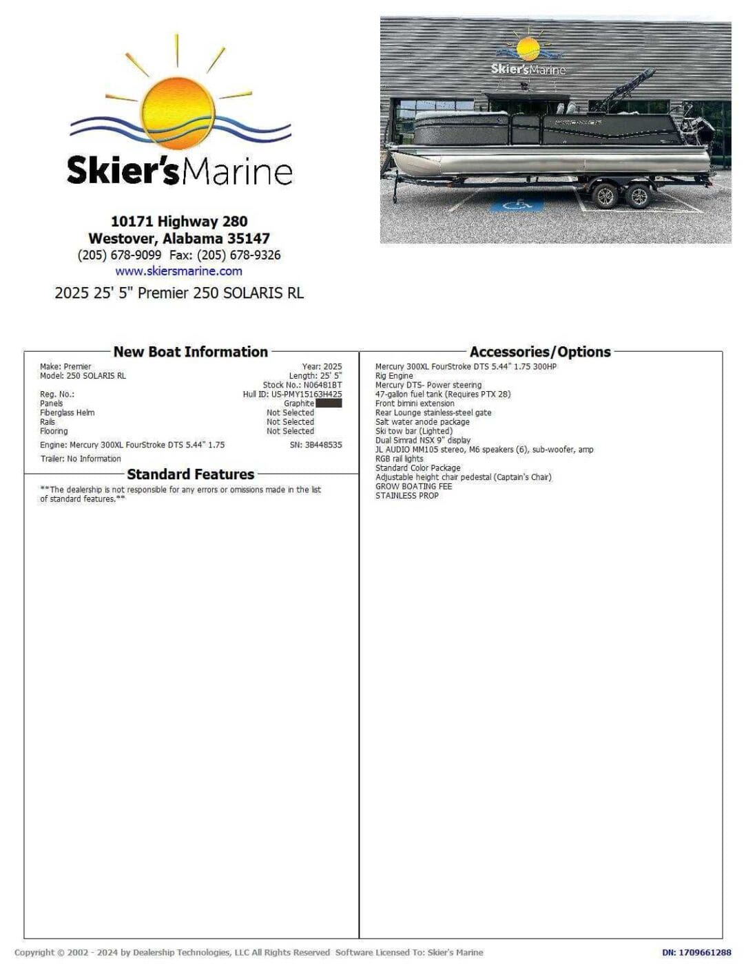 2025 Premier 250 SOLARIS RL (New) #N06481BT