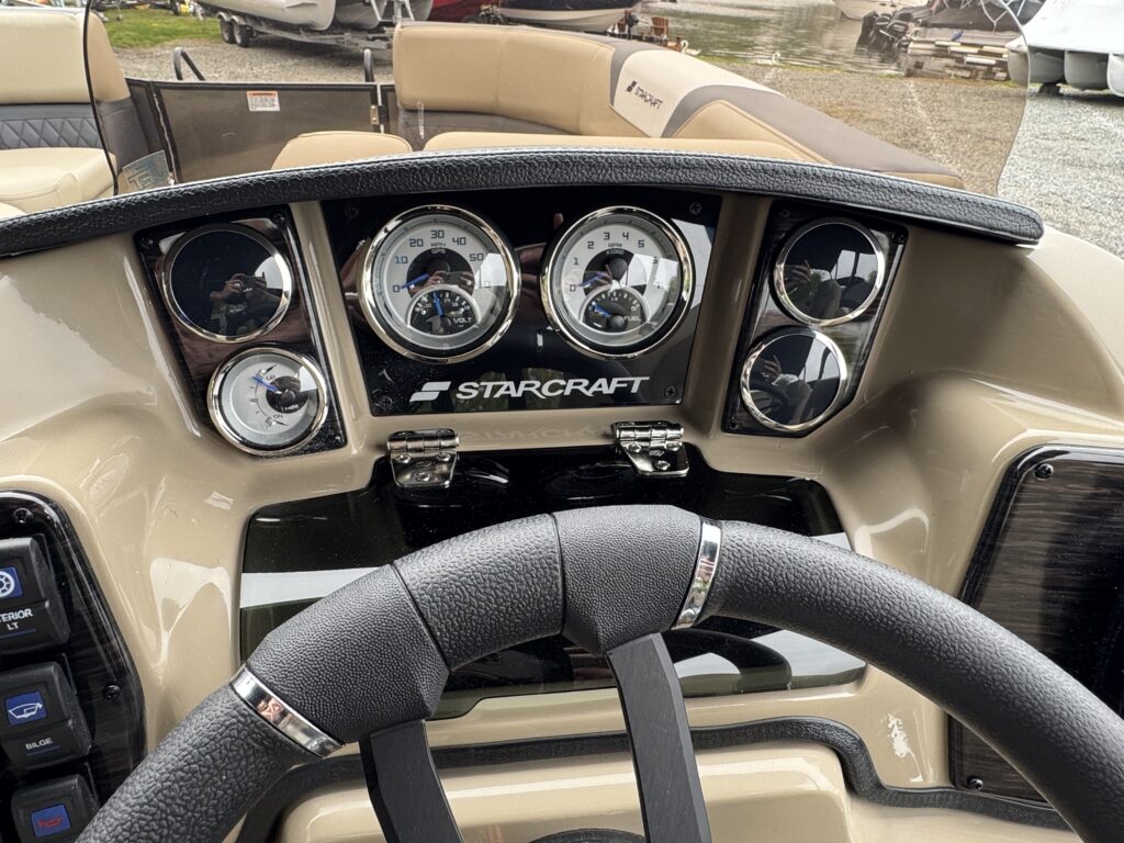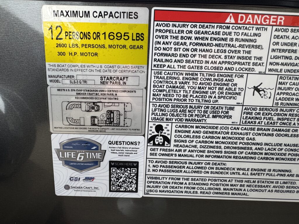 The Starcraft SLS 3 Q combines performance and versatility with its HMX Third Tube Performance Package for a smooth, stable ride. Its convertible flip-back lounge effortlessly transitions between relaxation and socializing, making it perfect for family and friends. Sleek and well-equipped, this pontoon promises memorable days on the water.