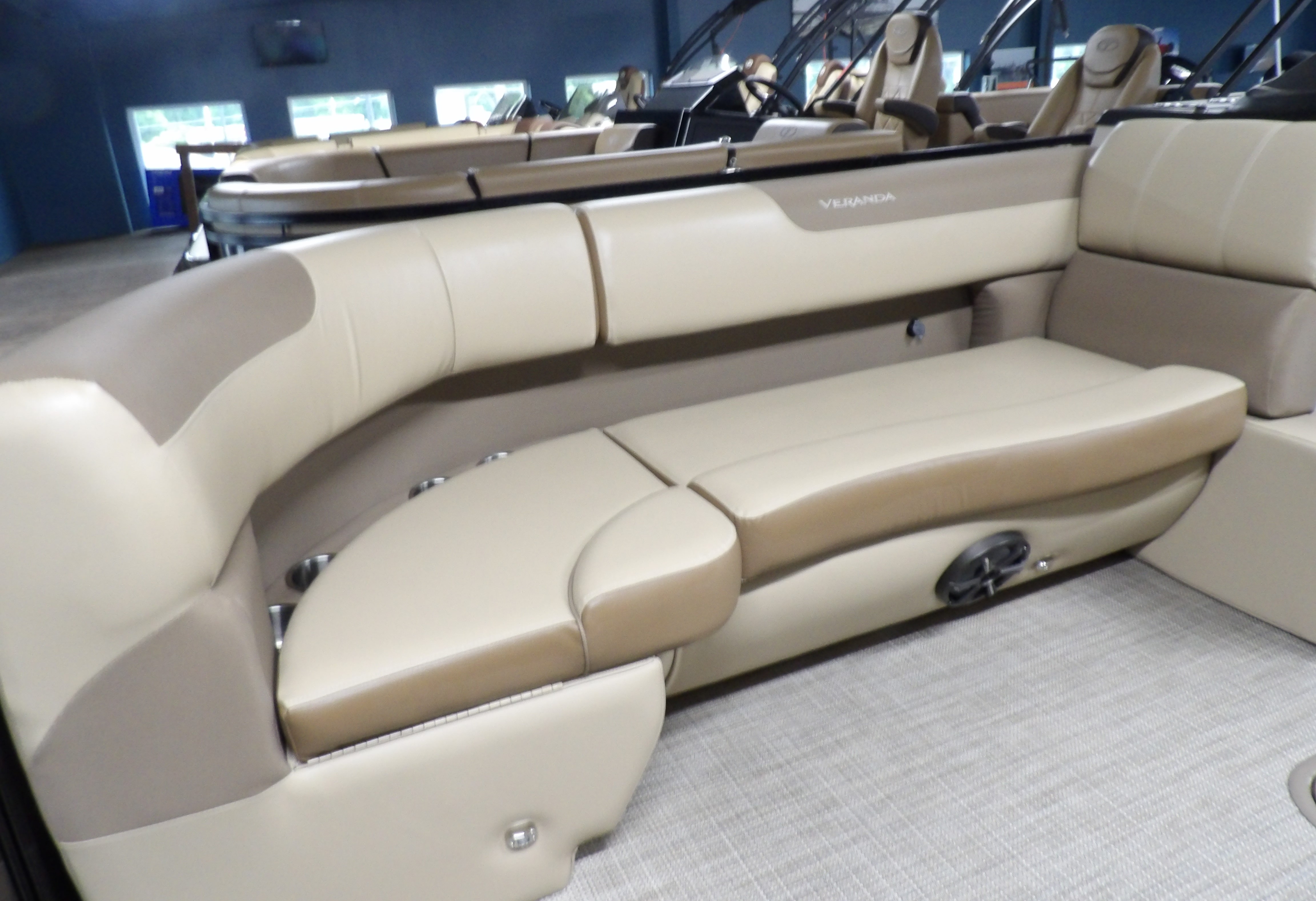 This 2025 Veranda VR22RC Relax series boat is updated & upgraded for the 2025 model year. This boat get new interior and exterior touches and a new helm just to name a few. This Veranda VR22RC comes with all the standard features of the Relax series plus these added options: power from a 200 HP Yamaha Four Stroke outboard, the XL package which includes a power bimini, in-floor storage, console shift panel with fire extinguisher & cell phone holders, adjustable pedestals and digital gauges. This also has side keels, the woven floor upgrade & easy step ladder. This Veranda in classic black looks great against the water & mountain backdrop of Lake Keowee. This Tritoon can be delivered to your dock on the water or we have a selection of trailers available for purchase. For the latest in pricing and incentives give us a call at Eclipse Marine Seneca (864) 670-2270 or stop in and see us at 305 US Hwy 123 Seneca, SC. Deck Length: 289 in. (7300 mm)