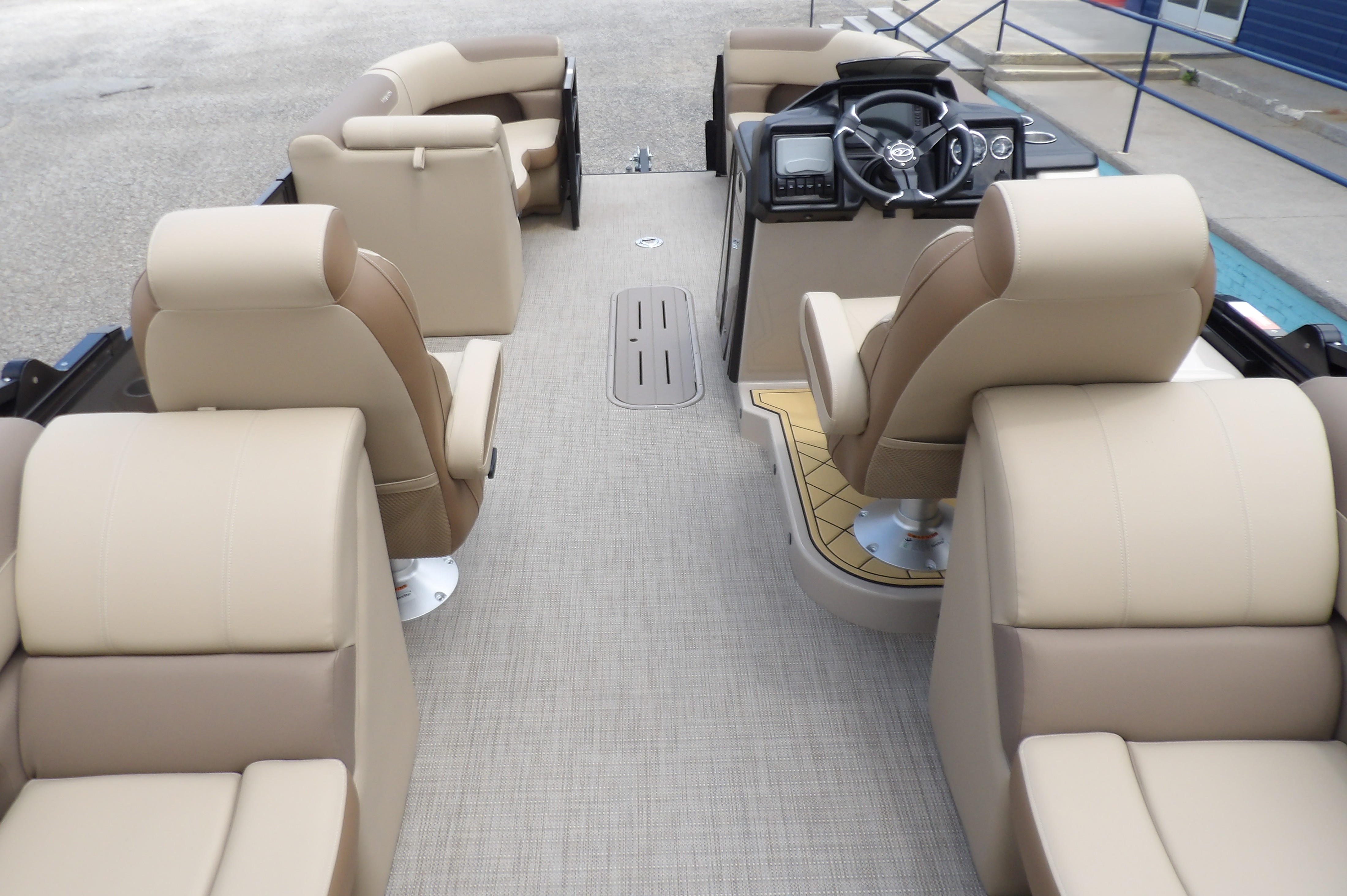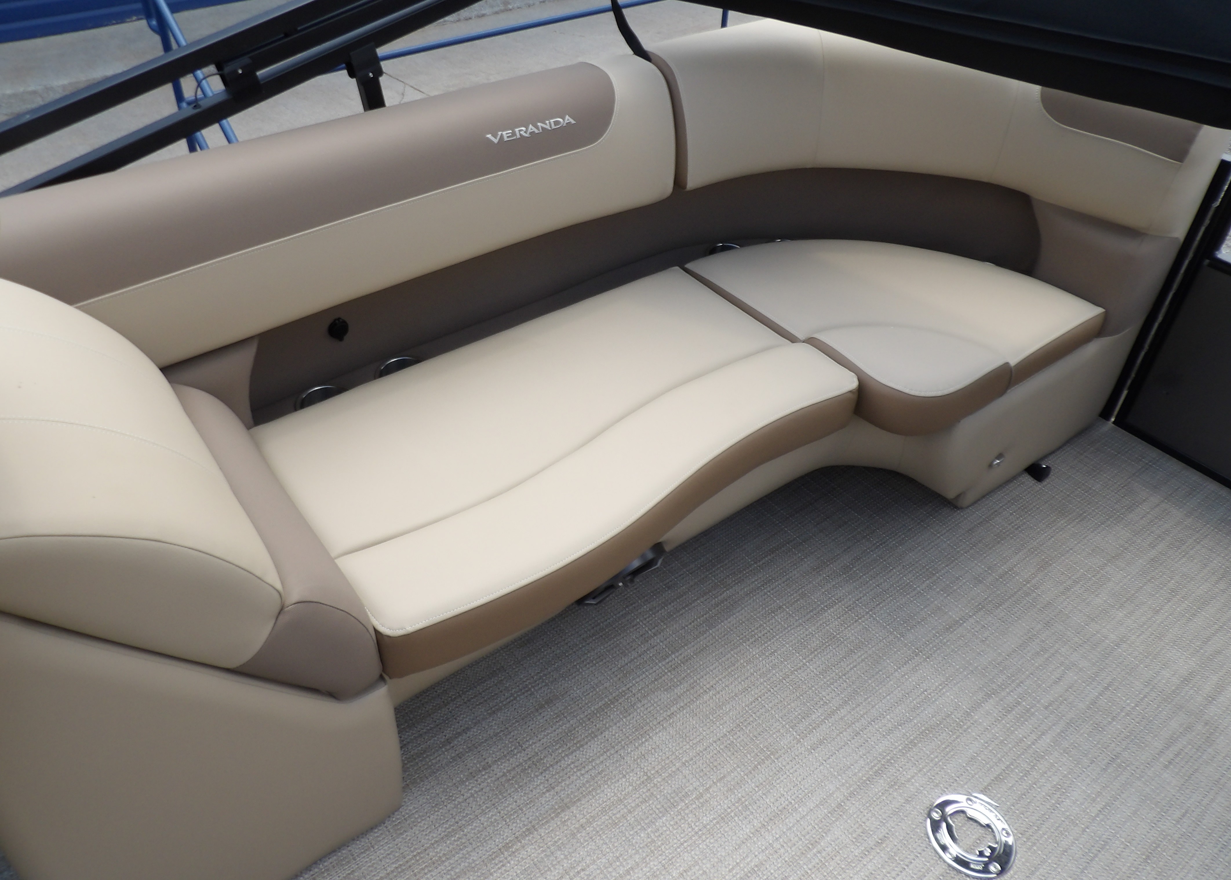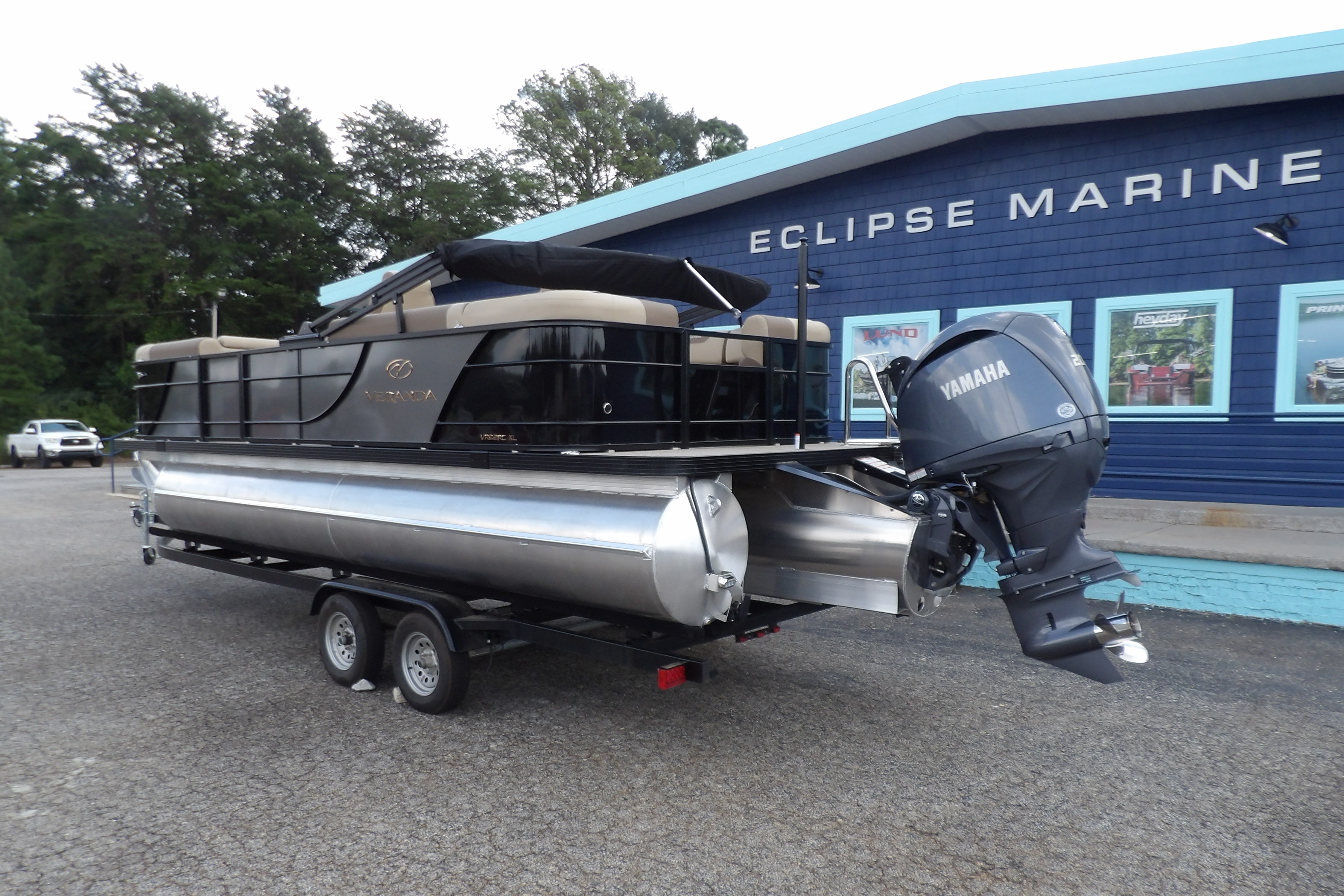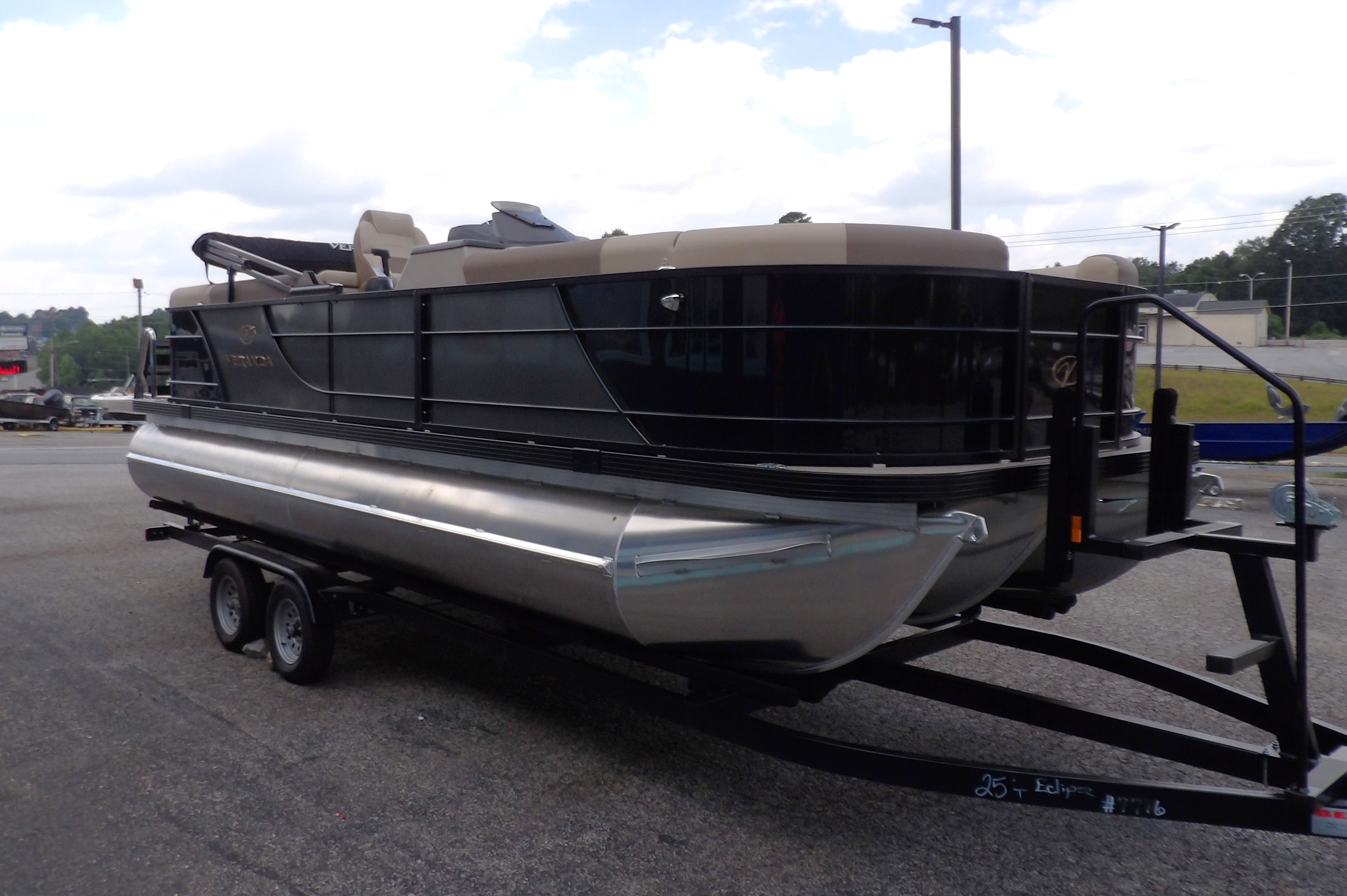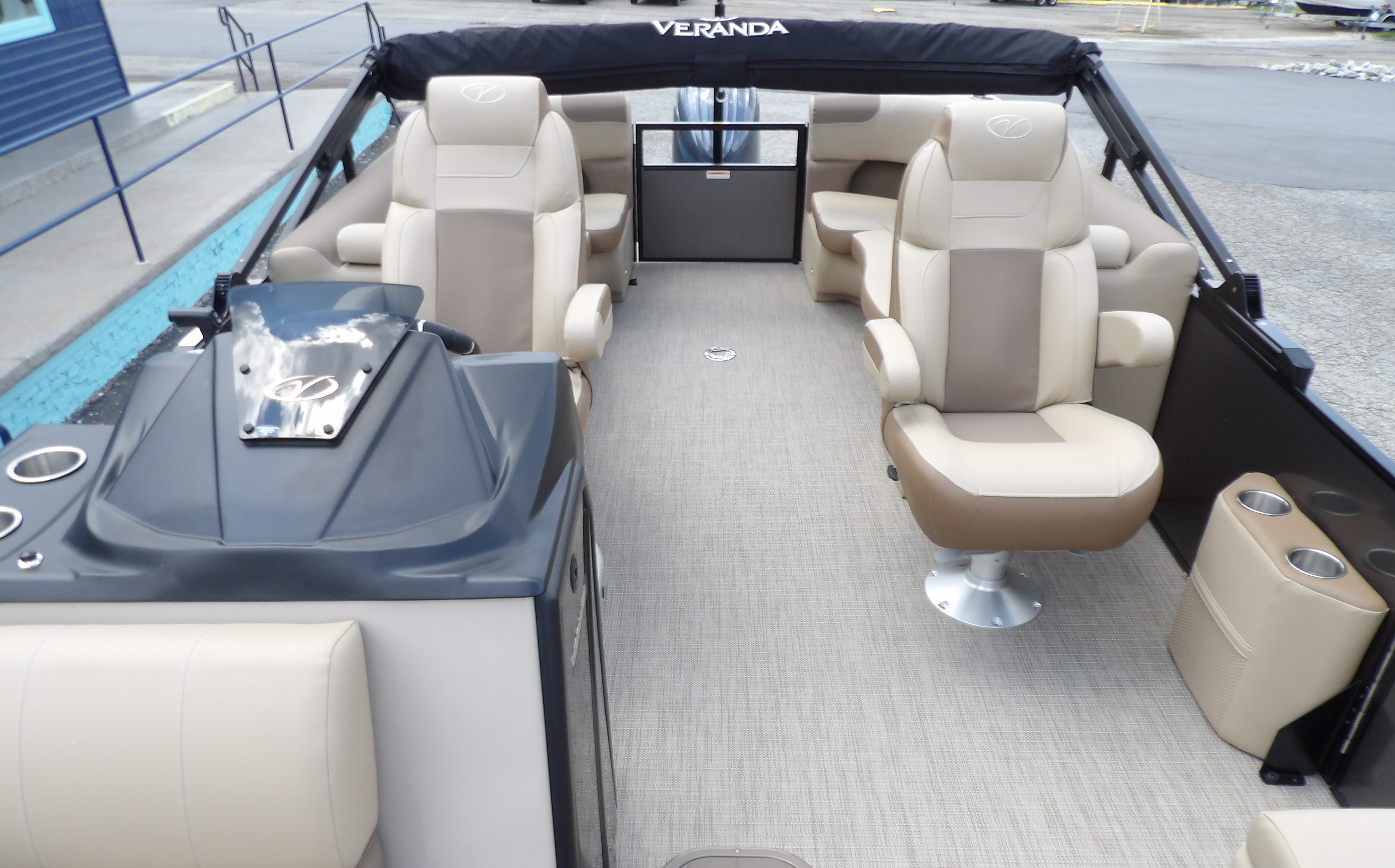 This new 2025 Veranda VR22RC Relax series in 2-Tone Black & Grey with tan interior boat has been updated & upgraded for the 2025 model year. This boat get new interior in and exterior touches and a new helm just to name a few. This Veranda VR22RC comes with all the standard features of the Relax series plus these added options: reliable power from a 200 HP Yamaha Four Stroke outboard, the XL package which includes larger 27" toons, a power bimini, two-tone paint option, in-floor storage, console shift panel with fire extinguisher & cell phone holders, adjustable pedestals and digital gauges. This also has the woven tan floor upgrade, side keels & easy step ladder. This 22 foot Veranda is the perfect platform to enjoy almost any activity on the lake. This Tritoon can be delivered to your dock on the water or we have a selection of trailers available for purchase. For more details, the latest in pricing and incentives give us a call at Eclipse Marine Seneca (864) 653-6767 or stop in and see us at 305 US Hwy 123 bypass Seneca, SC. Deck Length: 289 in. (7300 mm)