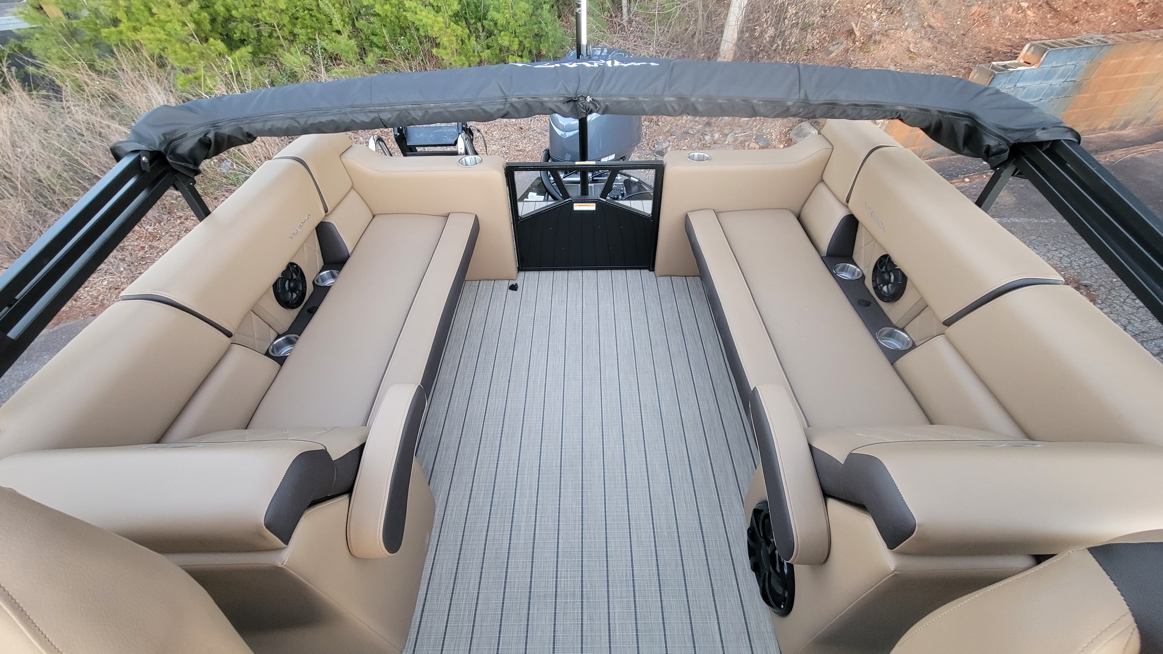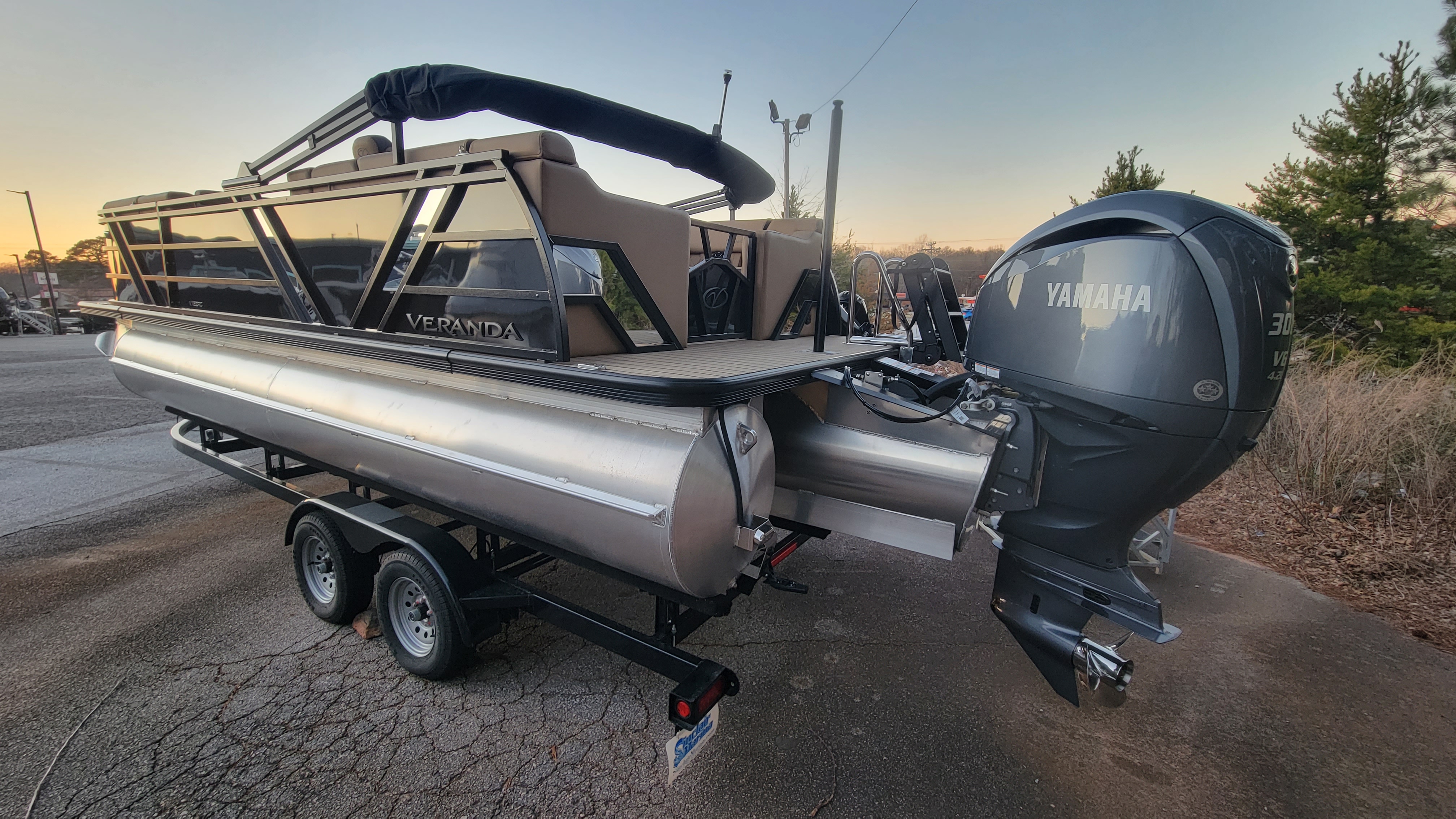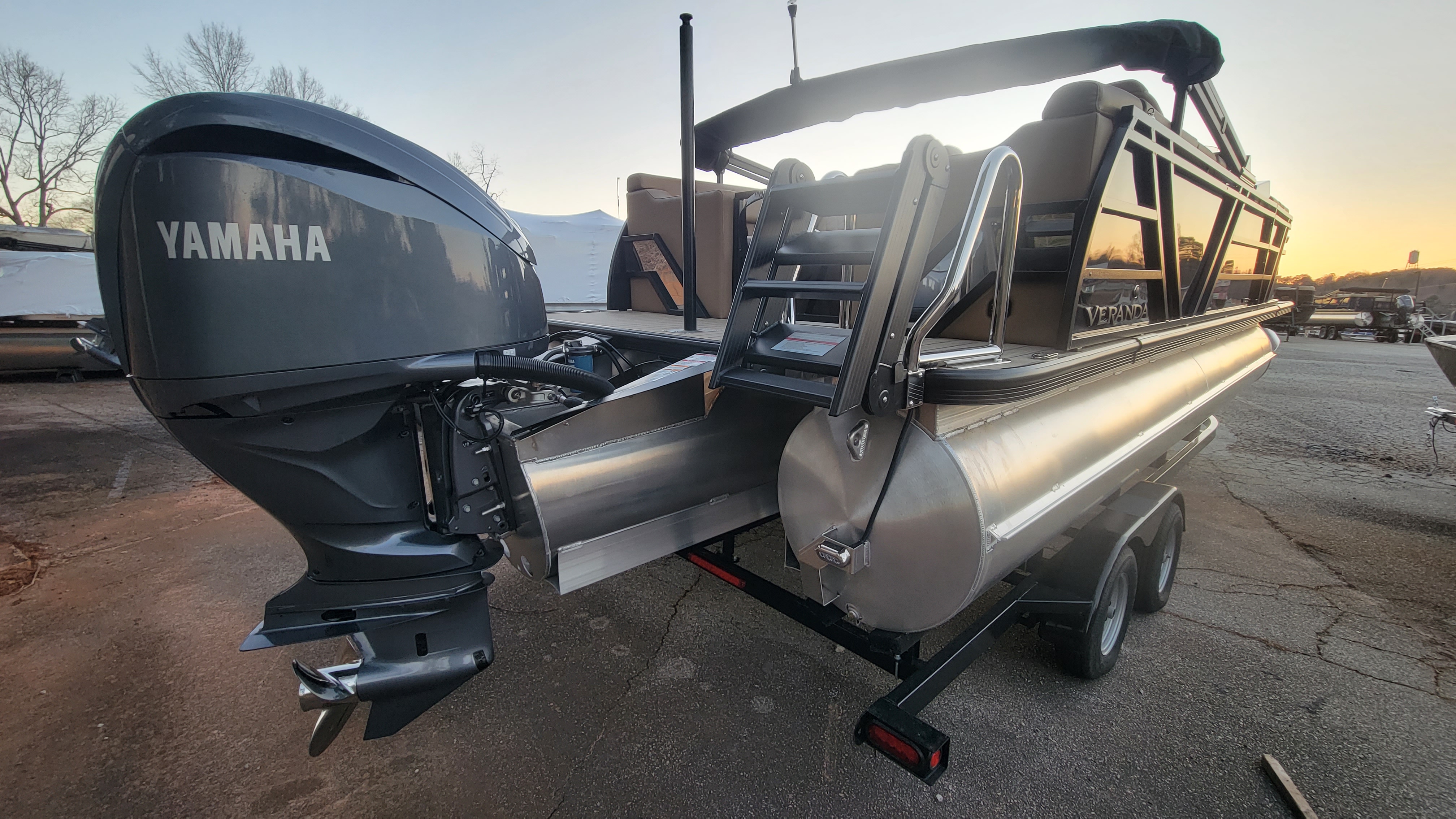 This Veranda Vertex VX22RC is an all new model for the 2025 model year. It comes loaded with equipment like a large touch screen Garmin display, Wetsounds audio system and LED lighting throughout that you'd expect in an upscale tritoon. This 22 footer boasts power from a stout 300 HP Yamaha Four Stroke outboard that will push you and your crew well past 50 miles per hour. Great for entertaining, cruising, & watersports, this do it all Veranda does it all and does it well.This Veranda Vertex can be delivered to your dock on the lake, or we have a selection of trailers available for purchase. For the latest pricing and incentives, give us a call at Eclipse Marine Seneca (864) 670-2250 or stop in and see us at 305 US Hwy 123 Seneca, SC. Deck Length: 289 in. (7300 mm)