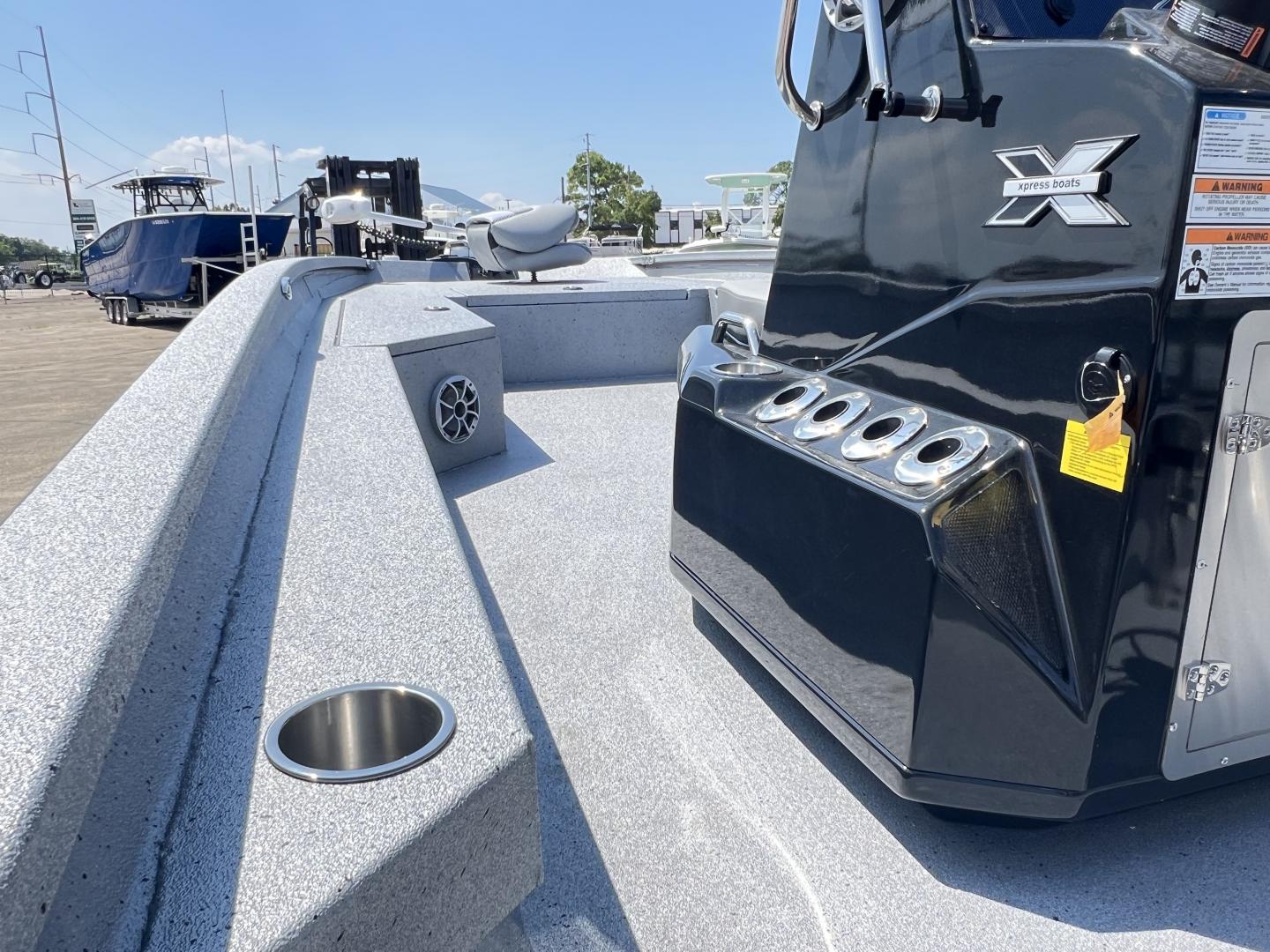 Xpress Hyper-Lift Bay Series boats are the SOLUTION. Built on the foundation of our Hyper-Lift Hull, this dream craft packs performance, fishability, and comfort into one amazing cost-effective boat. In thin water or rough seas, you will not find a better solution. Whether this is your first bay boat or you intend to make this the last bay boat you buy, the Xpress Hyper-Lift Bay Series will satisfy!ALUMINUM WHEEL UPG PER AXLECONSOLE GRAPH - 94SV W/ GT56UHDHARDWARE - HIGH PRESSURE WASH DOWN STATIONPROP - POWERTECH SS HUB UPG - LGSALTWATER TRAILER PKGTROLLING MOTOR PLUGTROLLING MOTOR - RT 80/WRTROLLING MOTOR SLIDE BRACKET MKA 51WETSOUNDS PREMIUM SOUND SYSTEMXTREME MARSH PKGSTEERING - SEA STAR HYDRAULIC TILTTROLLING MOTOR - BOW PANEL FOR PLUGCONSOLE COLOR - CHARCOAL METALLICALUMINUM WHEEL UPGRADEACCENT COLOR - CHARCOAL METALLIC BOTTOMPAINT - 2 TONE UPGRADE FROM STANDARDCHARGER - 2 BANKCONSOLE CUSHIONS - FLINTCONTOURED LEANING POST BACK - FLINTJACK PLATE - 6" ATLAS HYDRAULICJUMP SEAT - FLINTSEAT COLOR - FLINTWIRING - 6 GAUGE TM HARNESSCONTOURED LEANING POST BACK CUSHION - FLINTSEAT - EURO SEAT UPGRADES FROM FISHING SEATSXCLUSIVE GRAPHICS - SILVERSEAT - STAINLESS LEANING POST WITH BACKREST UPGRADEHARDWARE - STAINLESS STEERING WHEELHARDWARE - STAINLESS FOLD DOWN DECK CLEATSHARDWARE - STAINLESS ROD HOLDERSHARDWARE - STAINLESS CUP HOLDERSPLUMBING - AUTOMATIC BILGE PUMPPLUMBING - RECIRCULATING LIVEWELL / PUMP OUTBOW PAD - STORM GRAY / BLACKWIRING - TRIM ON BOWBASE COLOR - SILVER