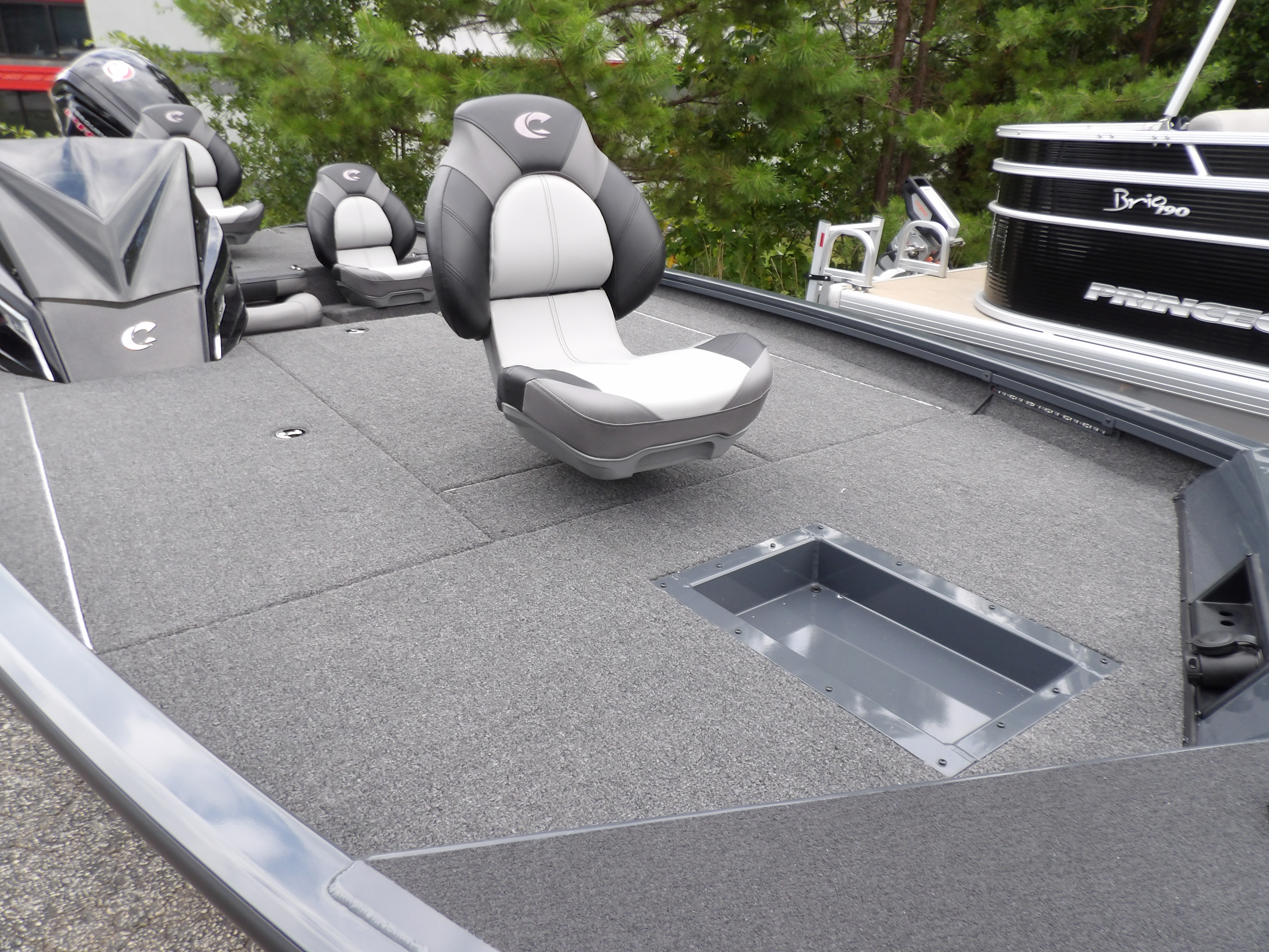 This new 2026 Crestliner XF 189 in dark grey metallic looks good on the trailer, but even better on the water. This new Mod- V aluminum bass boat from Crestliner comes with all the standard features of the XF series plus these added options: Reliable power from Mercury 115 hp PRO XS Four Stroke outboard, the Pro Package including- (black sport steering wheel, windscreen, automatic bilge pump, stern recirculating live well pump, insulated live well and storage lids, chrome latches, LED interior lights on the decks, stern live well & rod locker, ratchet straps & upgraded mag wheels on the trailer), center seat option & 24V 6 gauge trolling motor harness all sitting on a matching Crestliner bunk trailer. Looking for the latest in electronics? This boat is a blank canvas for you to add the latest tech from Humminbird, Lowrance, Garmin or Minn Kota. Have our service dept give you a quote to get just the right gear for however you fish. For more details, the latest in pricing and incentives give us a call at Eclipse Marine Seneca (864) 653-6767 or stop in and see us at 305 US Hwy 123 bypass Seneca, SC.
