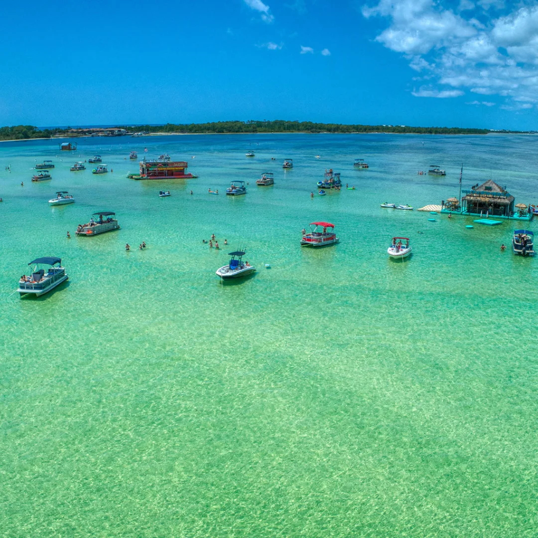 One of the most iconic destinations in Destin is the renowned Crab Island sandbar. This vibrant boating hotspot allows you to relax on your boat, indulge in delectable meals at floating restaurants, play on giant inflatable water parks, or even enjoy live music performances on a floating stage. Crab Island's uniqueness makes it an absolute must-visit for anyone in the area.